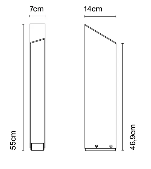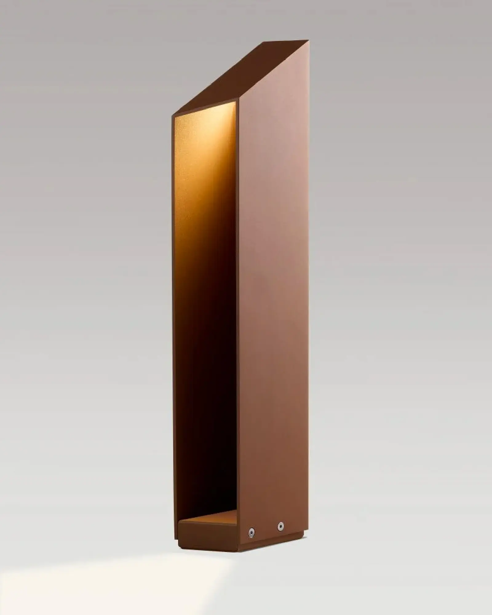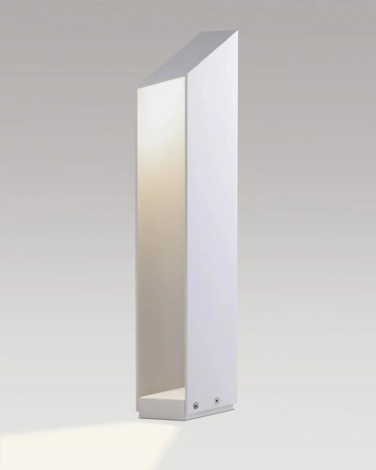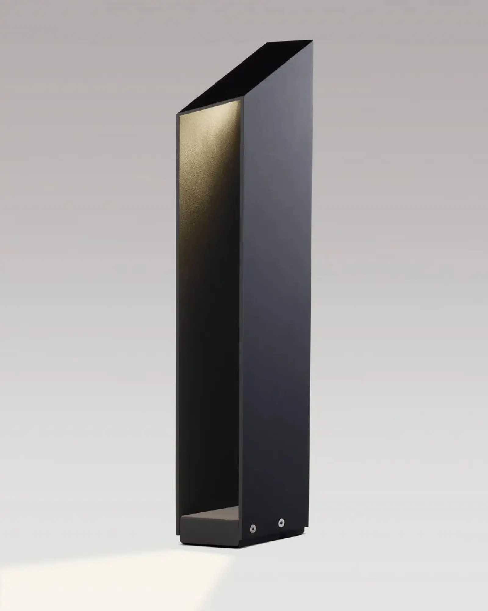 Un diseño arquitectónico de formas lineales, cuya parte superior crea una singular forma asimétrica. Este bolardo revela su interior vacío que, cuando está apagado, comulga con la luz natural y está repleto de matices. Cuando está encendido, su propia luz enriquece el espacio, asemejándose a un cubículo y recordando a la casa con las luces encendidas en su interior que inspiró originalmente el diseño.