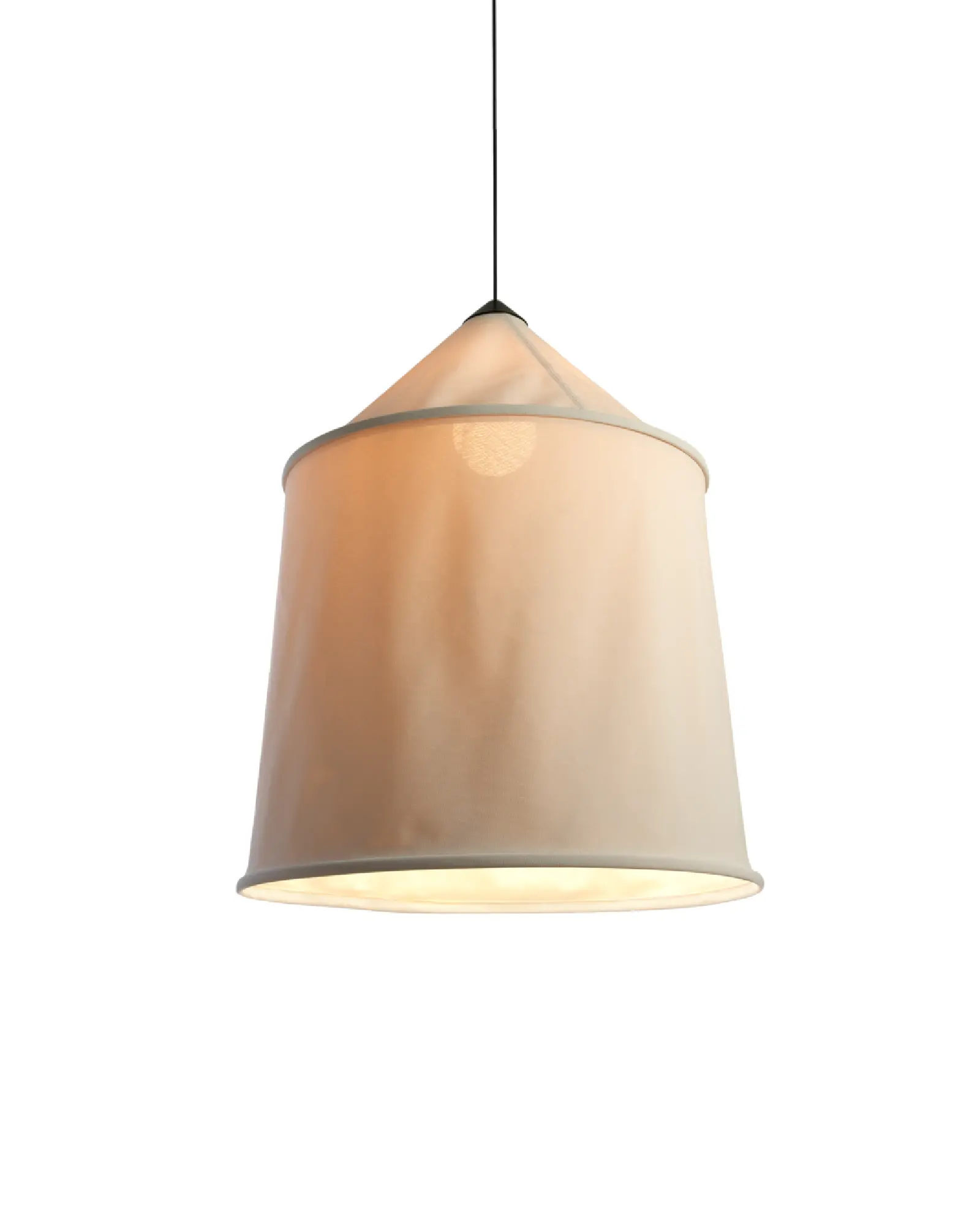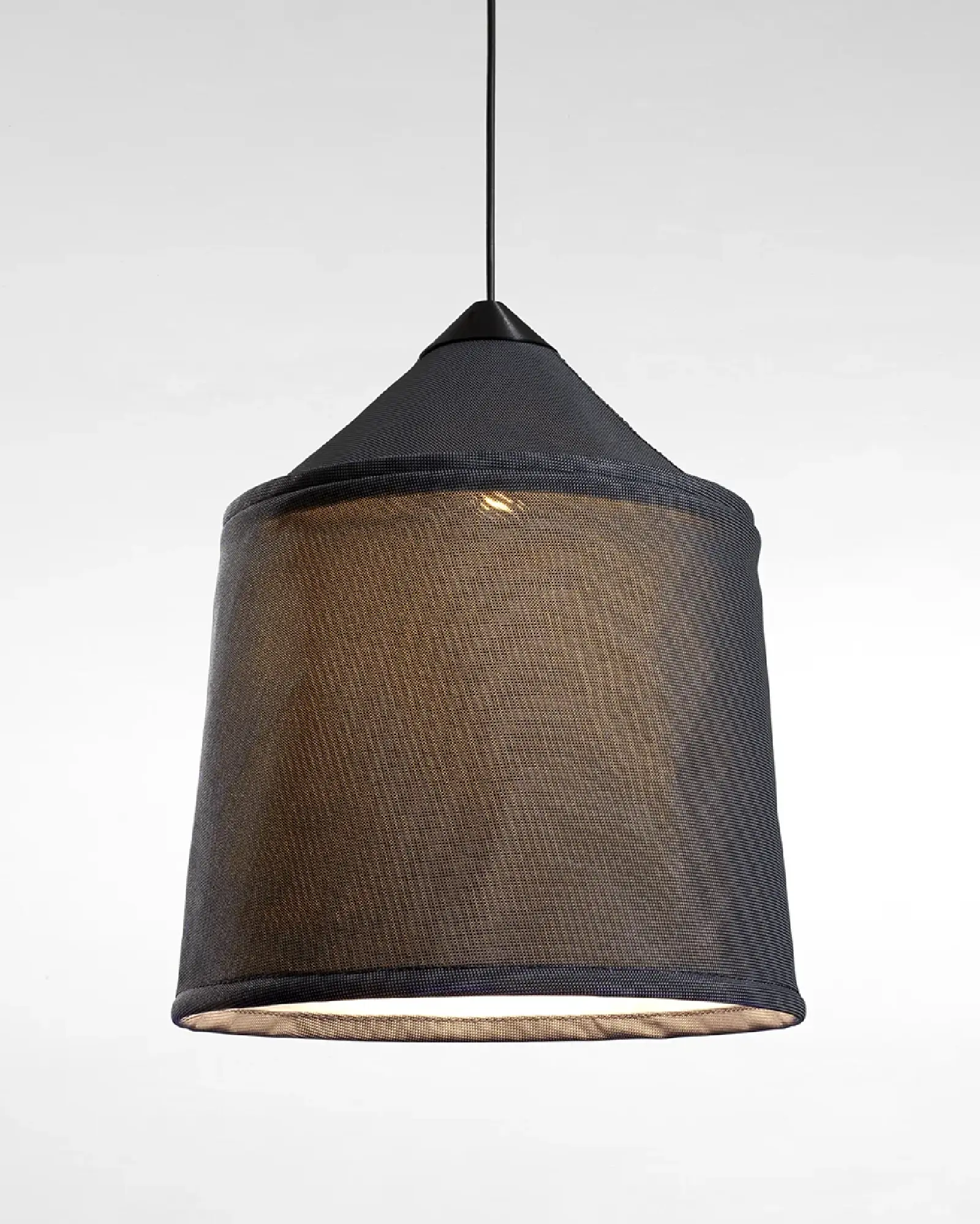 Inspirado en la cultura Africana en la variedad de tejidos y formas. La pantalla de textileno está disponible en tres tamaños y cuatro colores diferentes, con un interior en blanco para optimizar la calidad de la luz descendente.