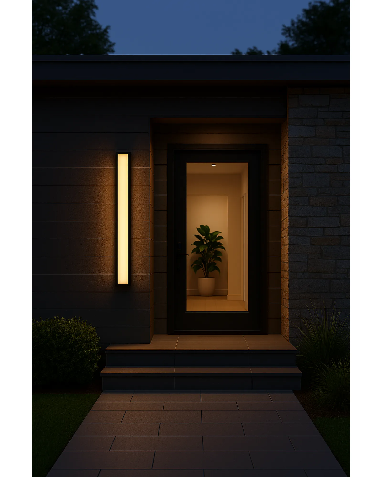 Un contorno vertical estilizado enmarca una superficie con un difuminado uniforme que se funde en un resplandor constante. Una sutil capa ahumada aporta profundidad y contraste, transformando su carácter entre el día y la noche.