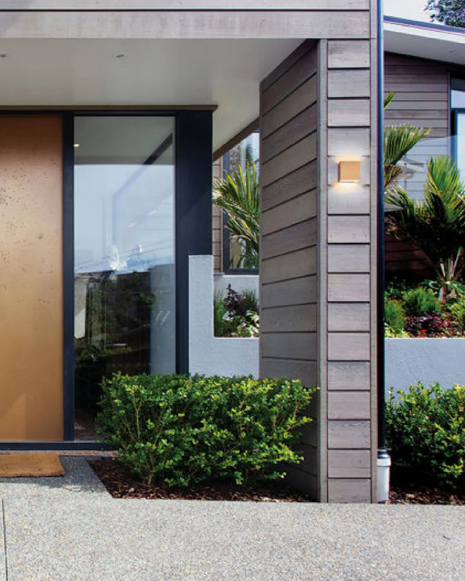 La luminaria Weston, de perfil bajo, presenta un diseño sencillo, limpio y moderno que ofrece una iluminación LED discreta ideal para exteriores. Está disponible en dos tamaños y tres acabados: latón dorado envejecido, níquel cepillado y negro mate.