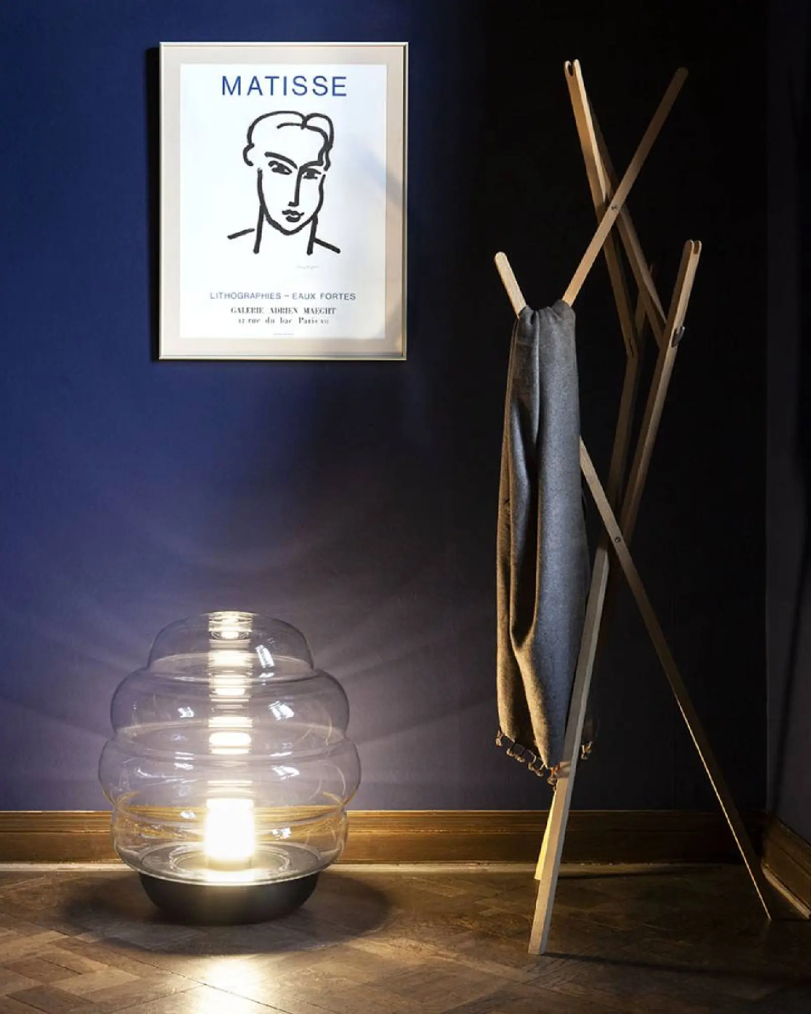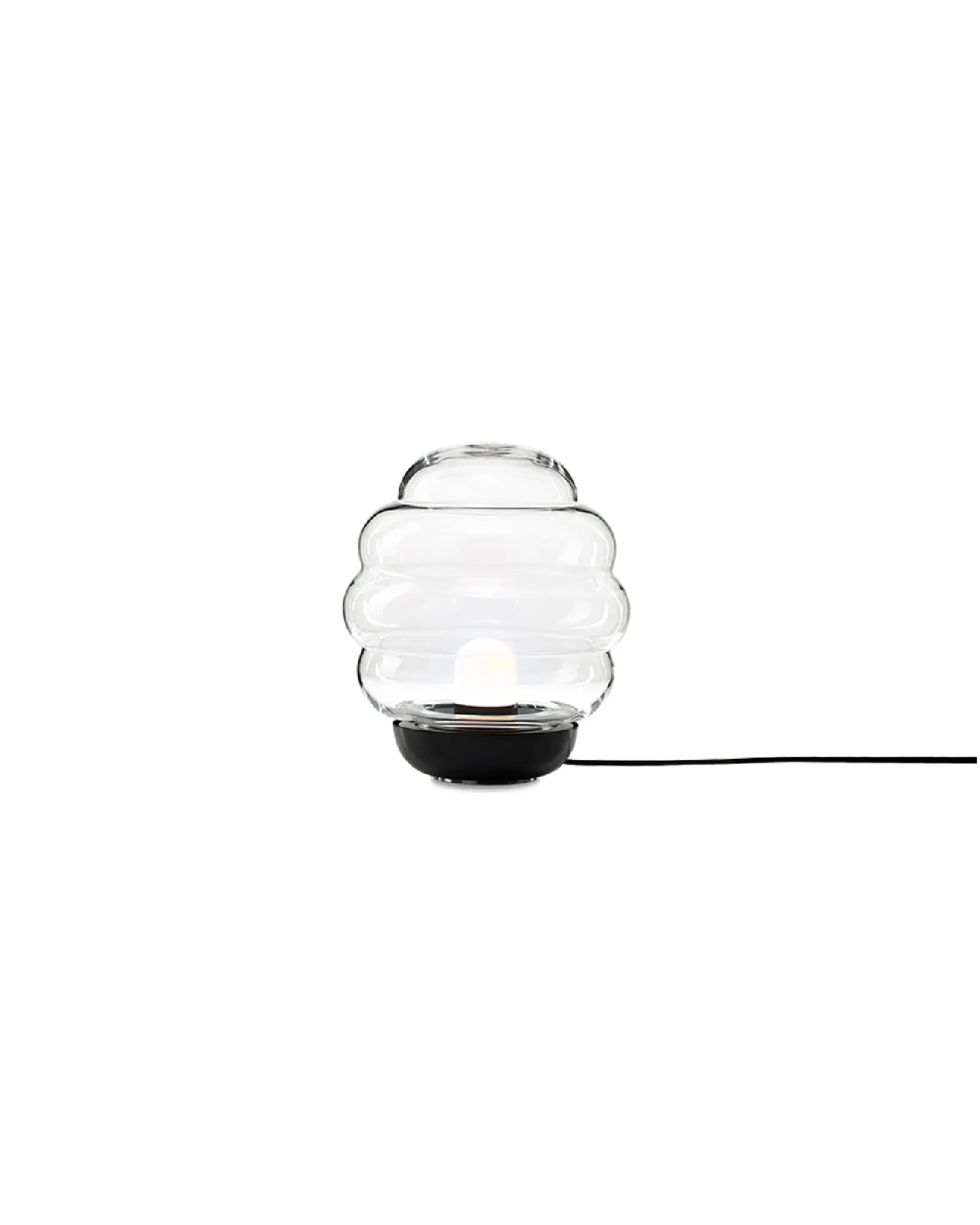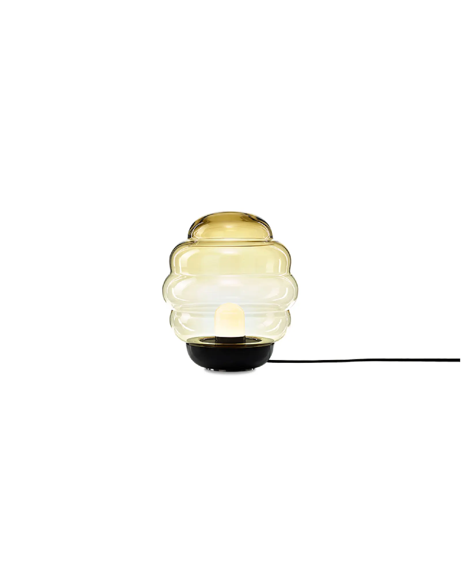 Su lámpara cuenta con una pantalla de cristal, que adquiere una forma elegante y ondulante, inspirado en las nubes. Dentro de esta pantalla descansa un LED integrado que ilumina brillantemente su entorno. Esta lámpara se mantiene en su sitio gracias a una base redondeada de metal fino.