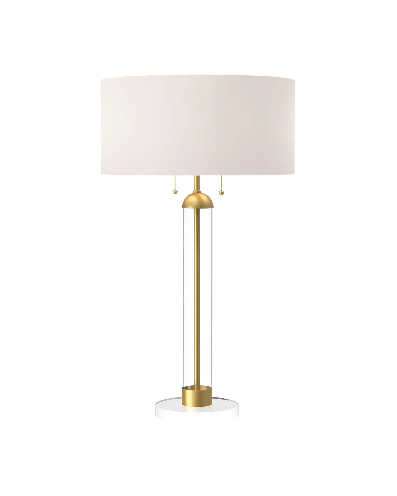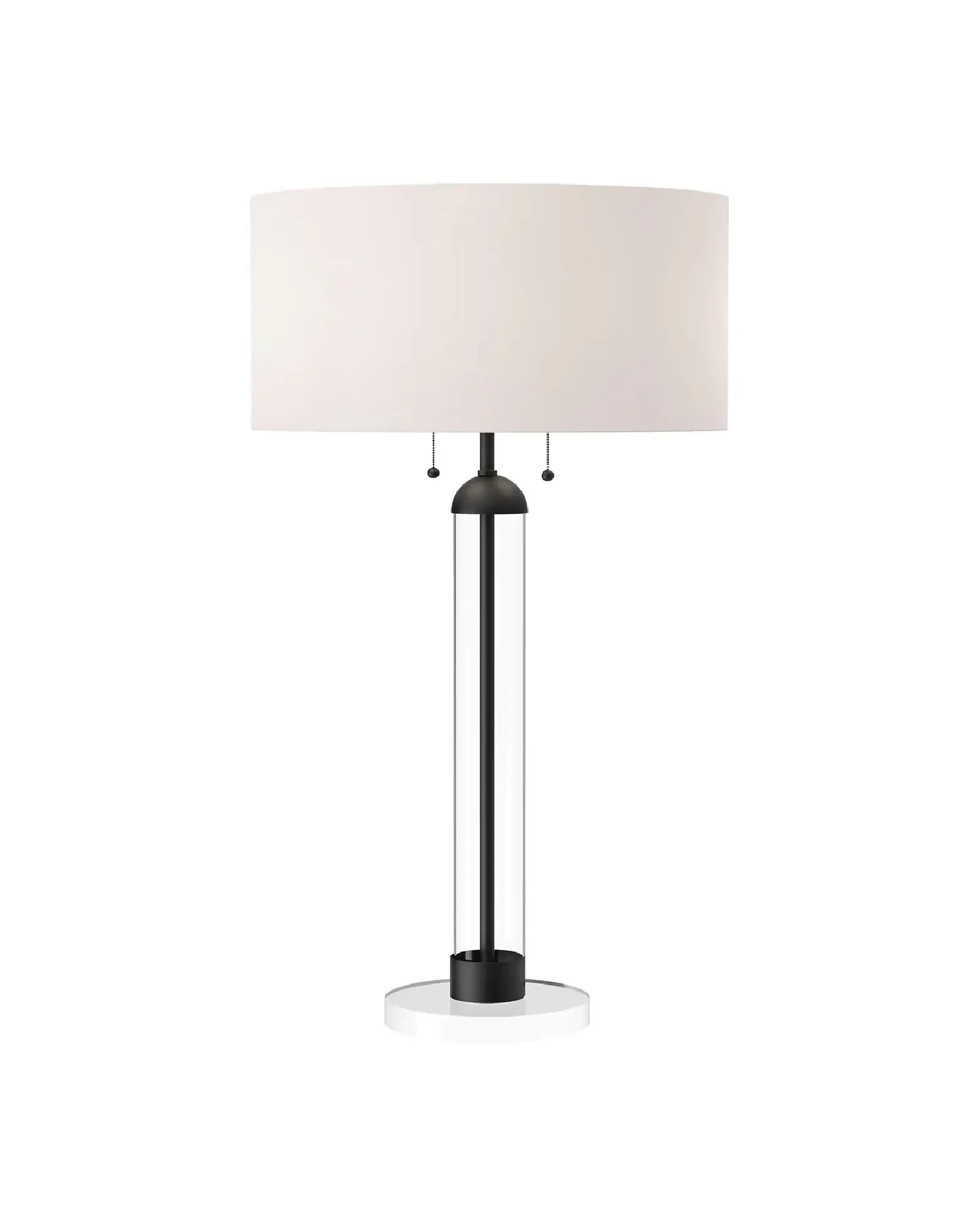 Sasha es una moderna lámpara de sobremesa de estilo clásico. Está compuesta por un elegante brazo de cristal transparente, que envuelve y deja al descubierto un tallo metálico, y adornada con una impresionante pantalla de tambor de lino blanco. Esta clásica mezcla de texturas y acabados aportará elegancia y estilo a cualquier espacio.