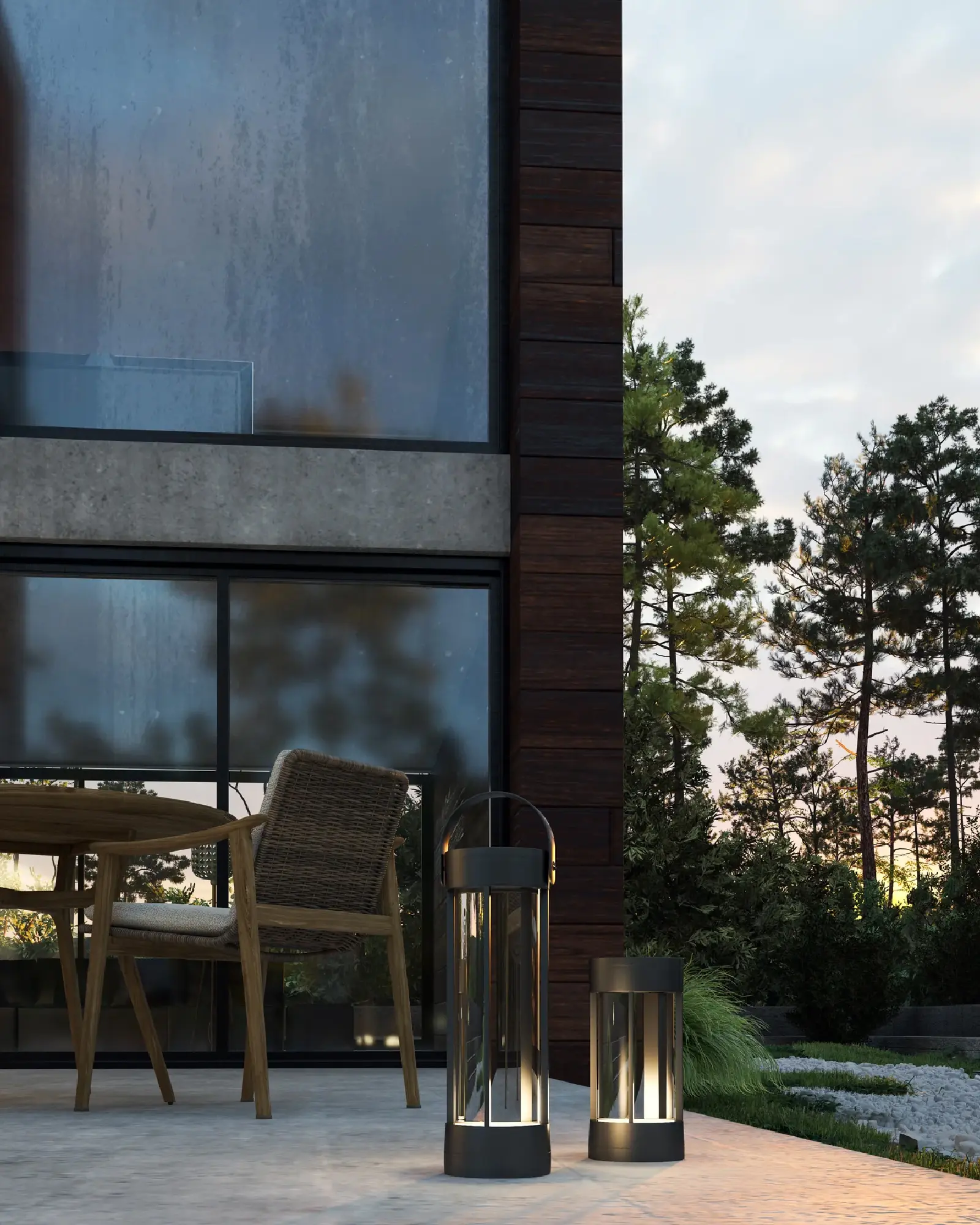 La colección Suara es la compañera perfecta para sus veladas nocturnas exteriores. Con un sencillo cuerpo de aluminio forjado y cristal, esta colección se adapta a cualquier estilo de diseño. Suara puede cargarse con energía solar o mediante un cargador. Coloque Suara a la luz directa del sol, con el panel hacia arriba, para cargarla durante el día.