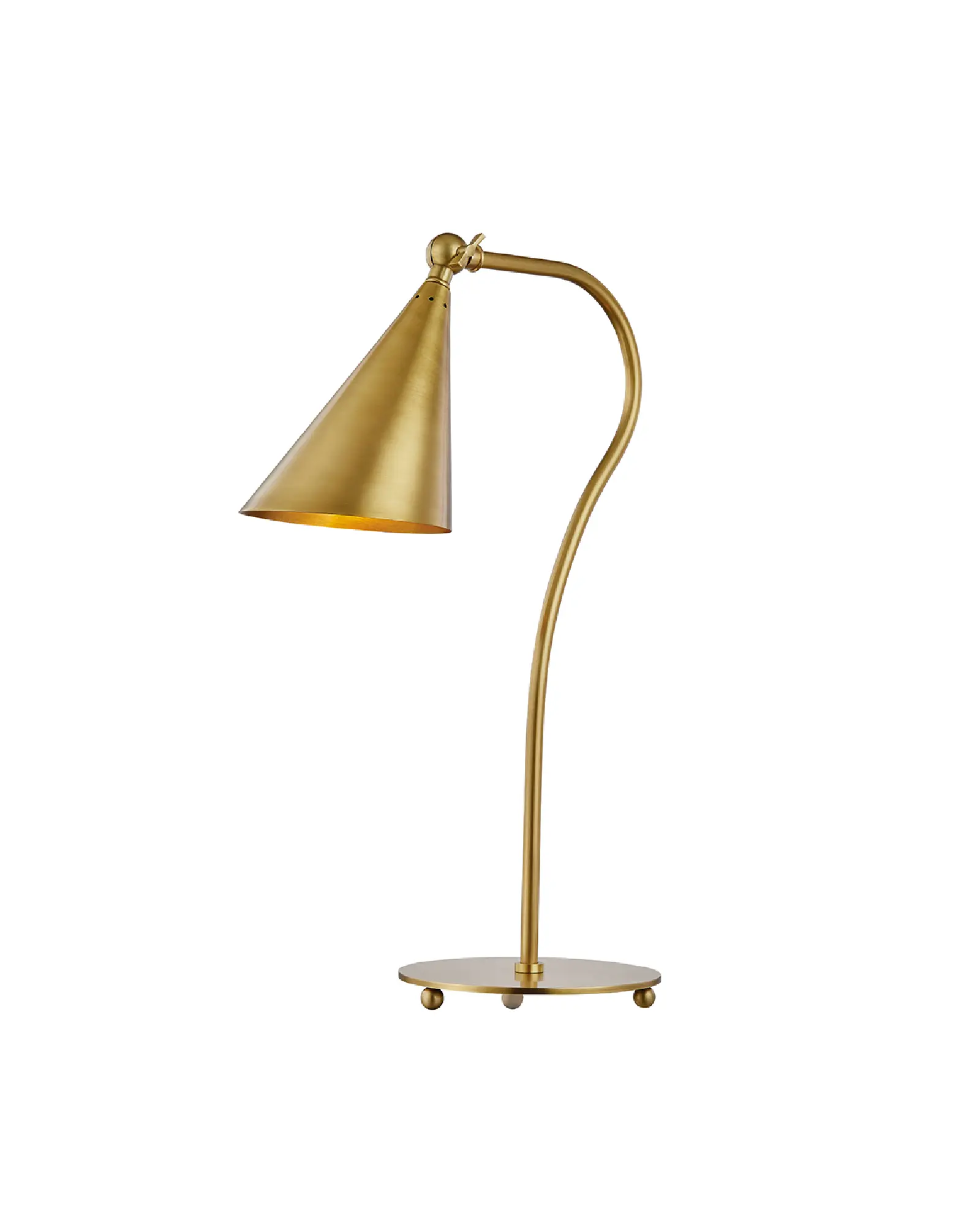 No deje que el aspecto recatado de Lupe le engañe. Todo un caballo de batalla, Lupe es un utilitario de corazón, equipado con una elegante llave giratoria para crear luz direccional. La colección Lupe incluye lámparas de pared y portátiles. La lámpara de sobremesa de cuello de cisne está disponible en latón envejecido, bronce antiguo o níquel pulido. Los apliques de pared están disponibles en los mismos acabados, así como en los acabados bicolor Latón envejecido/Negro y Latón envejecido/Blanco.