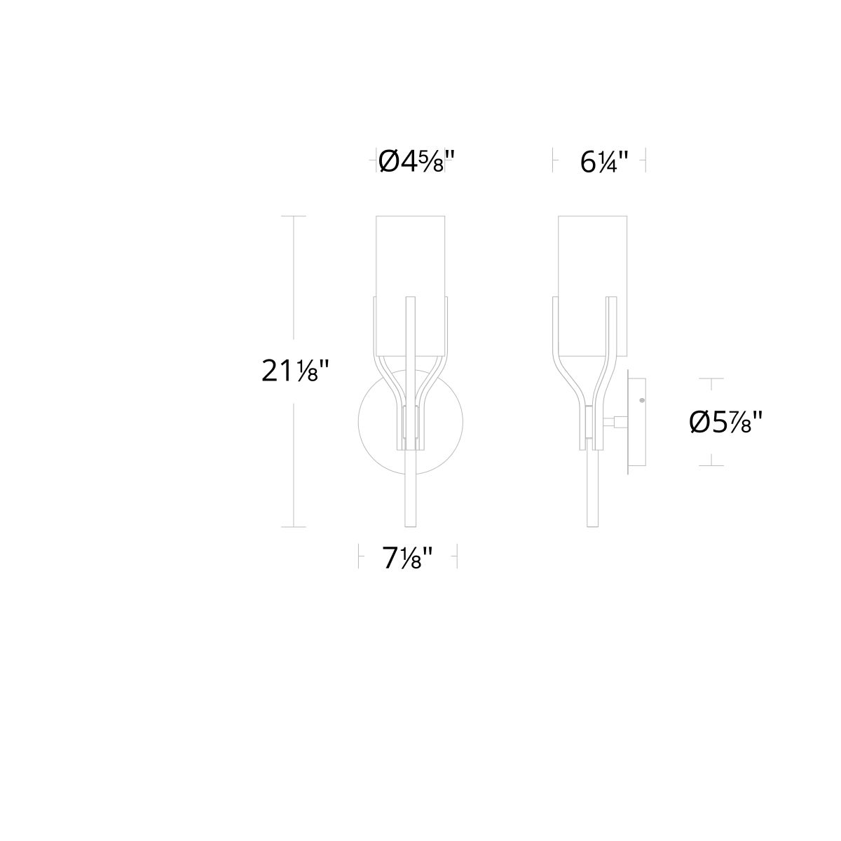Sconce conformado por una pantalla cilíndrica de alabastro reforzada por su marco de aluminio.