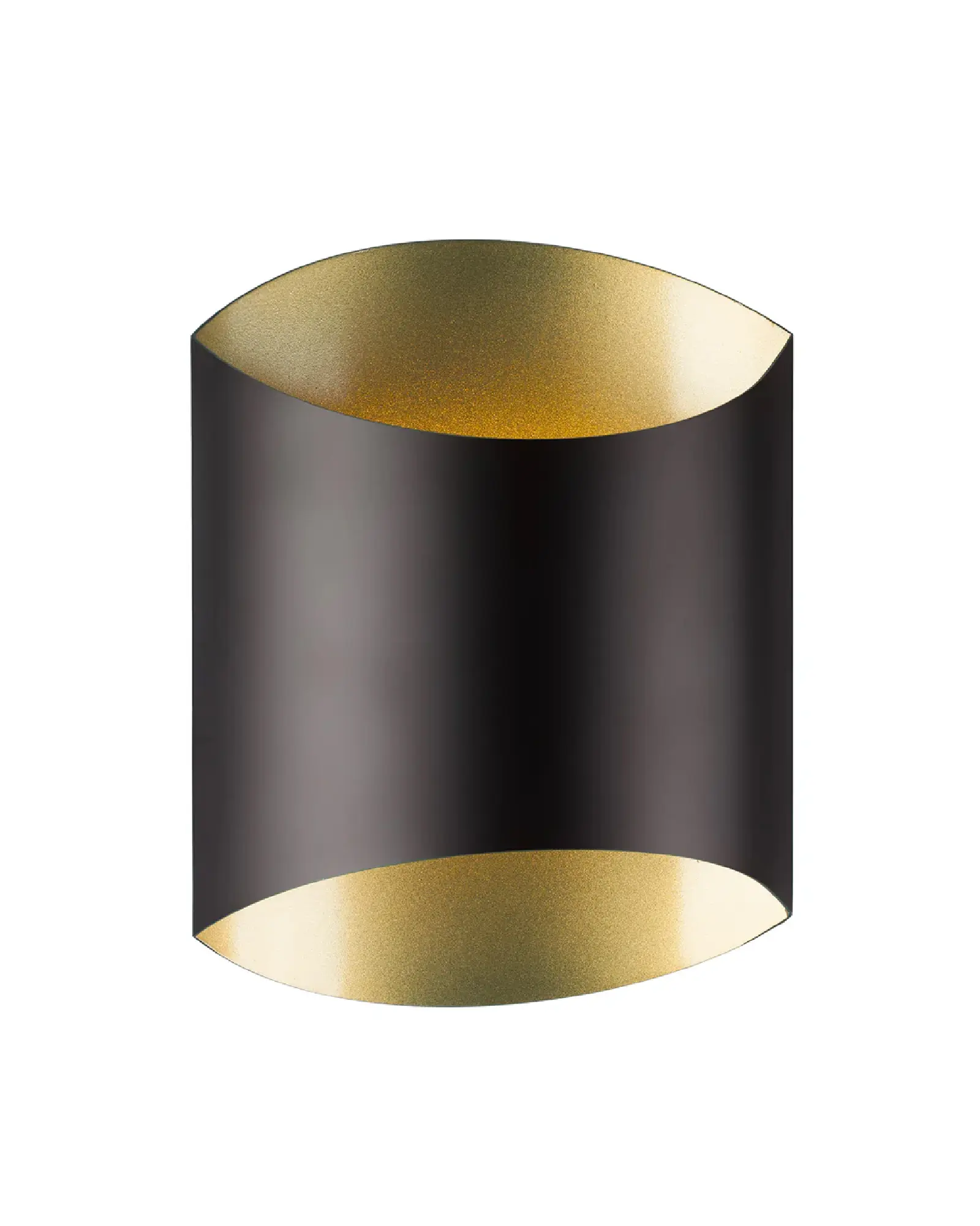 Aplique de pared LED de una lámpara con carcasa metálica única en negro liso con interior dorado fino o blanco con interior plateado elegante. Equipado con una potente tecnología LED