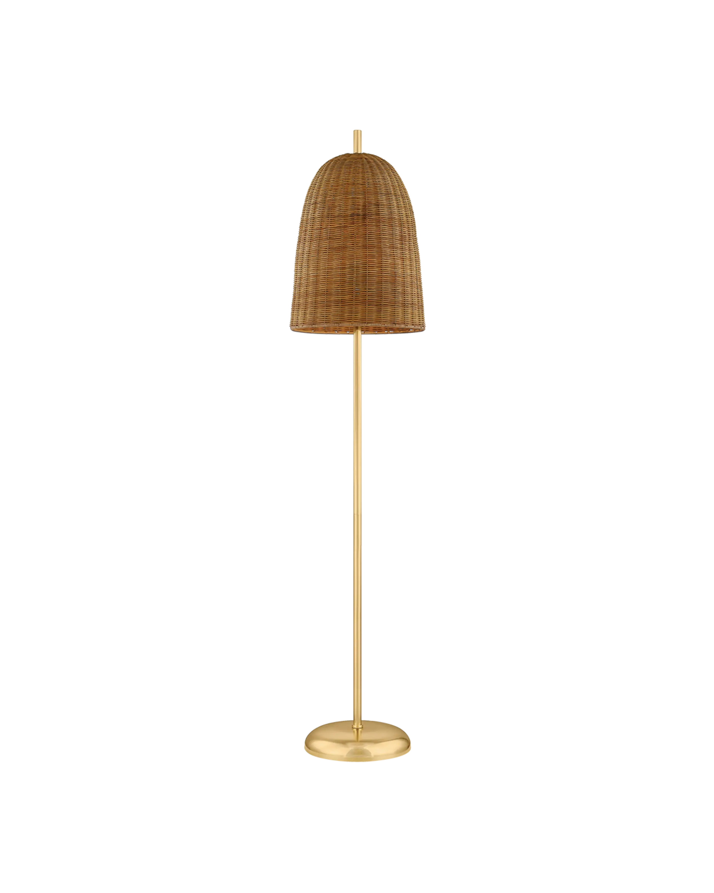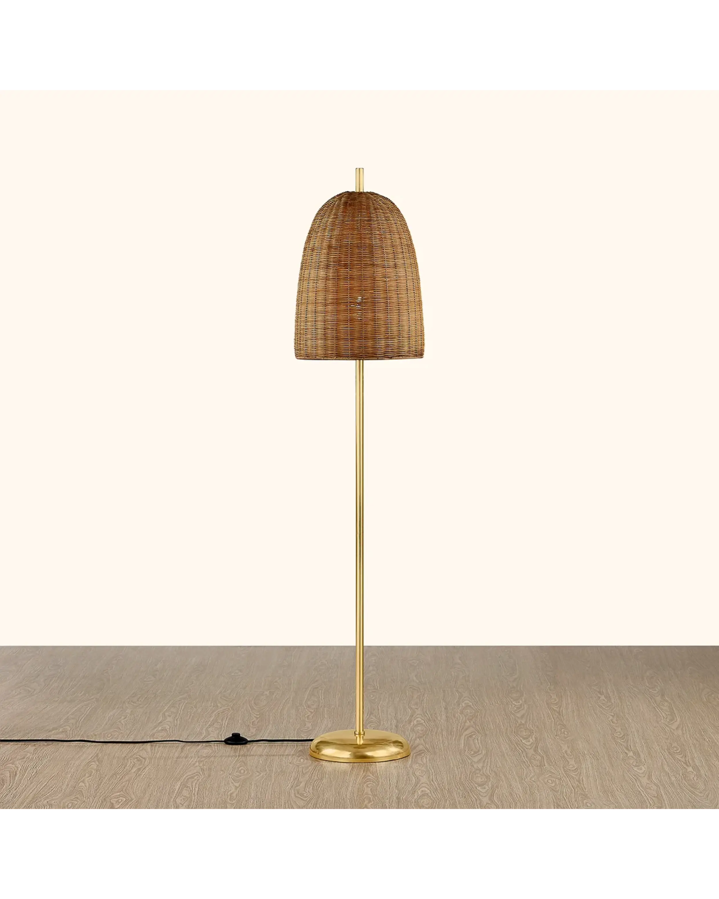 Inspirándose en la cestería tradicional, Beatrice presenta una pantalla de mimbre de gran tamaño pero esbelta, combinada con una base simplificada de latón envejecido. El intrincado tejido difumina la luz para crear un suave resplandor ambiental, mientras que el metal reflectante añade un toque de brillo lujoso. Esta pieza decorativa tan original es ideal para combinar en una sala de estar o un dormitorio.