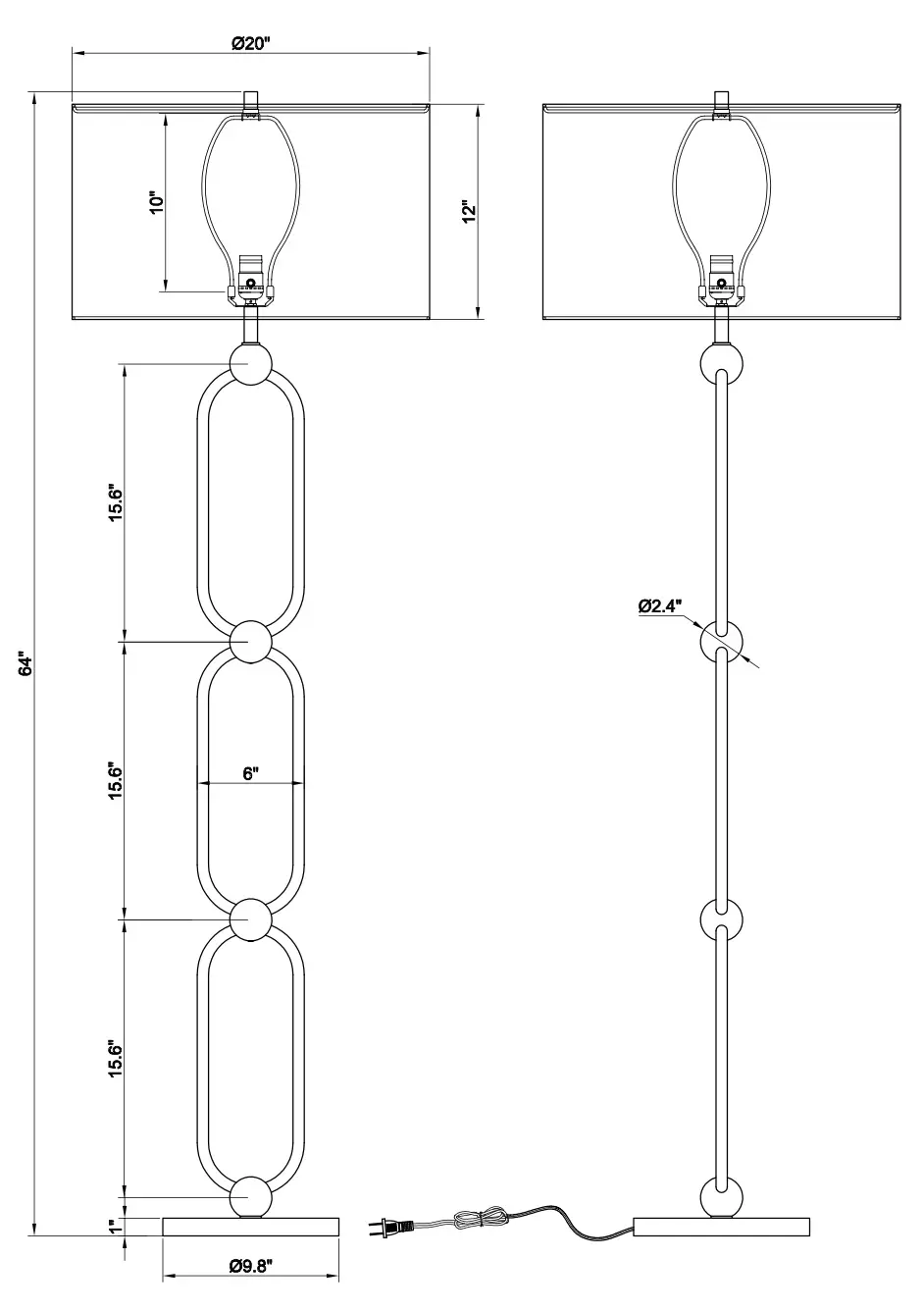 La elegante lámpara de pie Follina presenta un ingenioso cuerpo formado por óvalos entrelazados con un acabado en bronce oscuro. Esta pieza se remata con una pantalla cilíndrica disponible en tejido blanco y blanco roto.