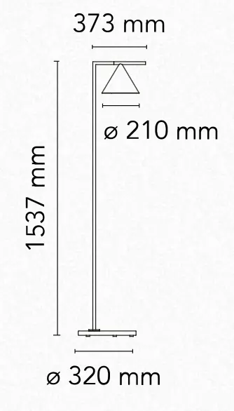 Varilla y cono de acero lacado o latón cepillado. Difusor de policarbonato opalino fotograbado moldeado por inyección. Interruptor para regular la intensidad con pedal, que garantiza las funciones de encendido y apagado (ON/OFF) y la regulación del flujo luminoso 10-100 %. Suministro eléctrico en clavija con enchufes intercambiables.