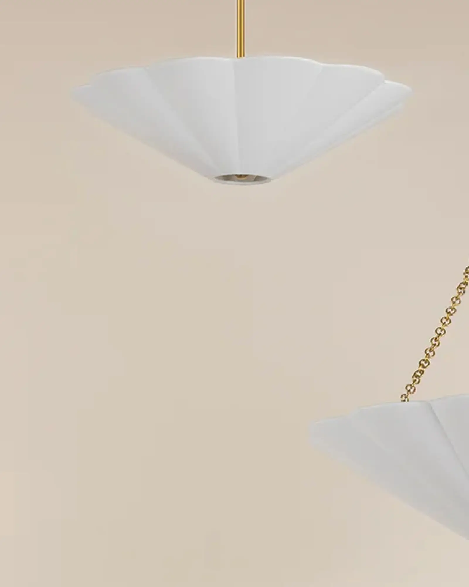 Alana es ligera y ligera. Una bonita pantalla festoneada de lino blanco está adornada con detalles de latón envejecido, como bolas de metal, cadenas y un dosel. Las cadenas a cada lado de la lámpara de mesa de cerámica cuelgan como pendientes, añadiendo funcionalidad y moda.