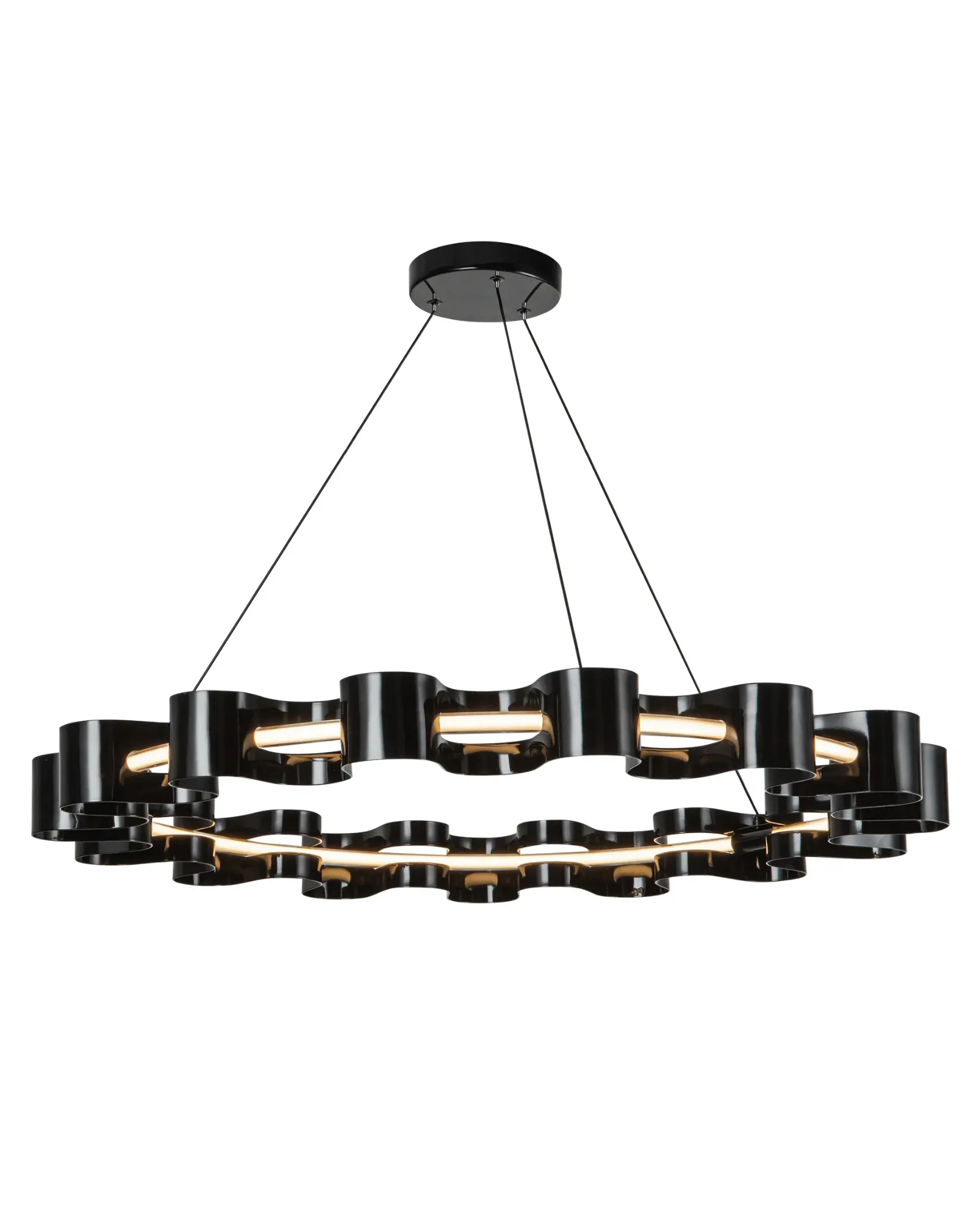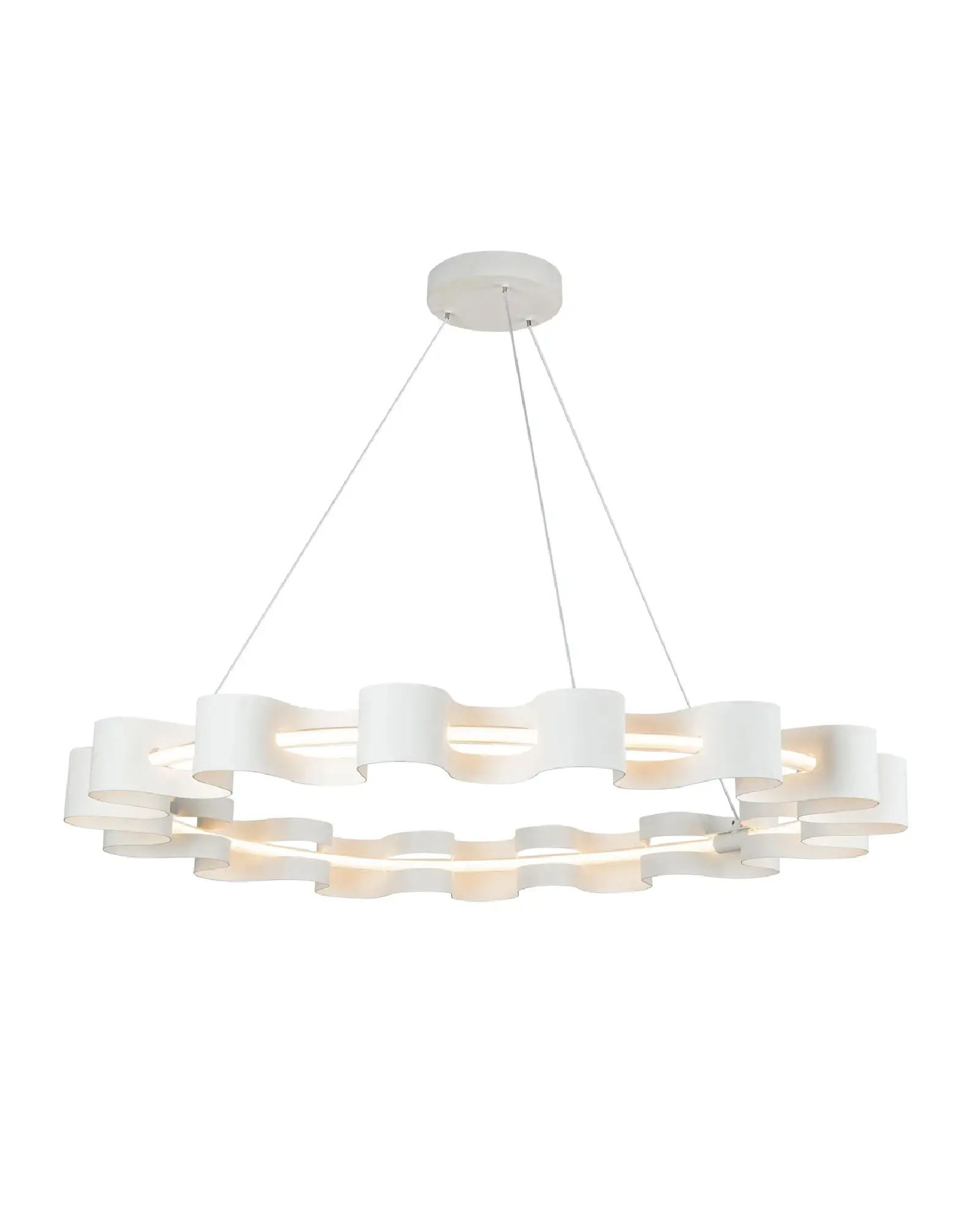 La colección Nami crea ondas orgánicas a través de su diseño fluido. El anillo exterior de la araña Nami proporciona una estructura orgánica, esculpida en aluminio y acabada en negro brillante o blanco antiguo. El anillo interior proporciona una iluminación amplia pero suave al diseño, reflejándose en la capa metálica con elegancia.