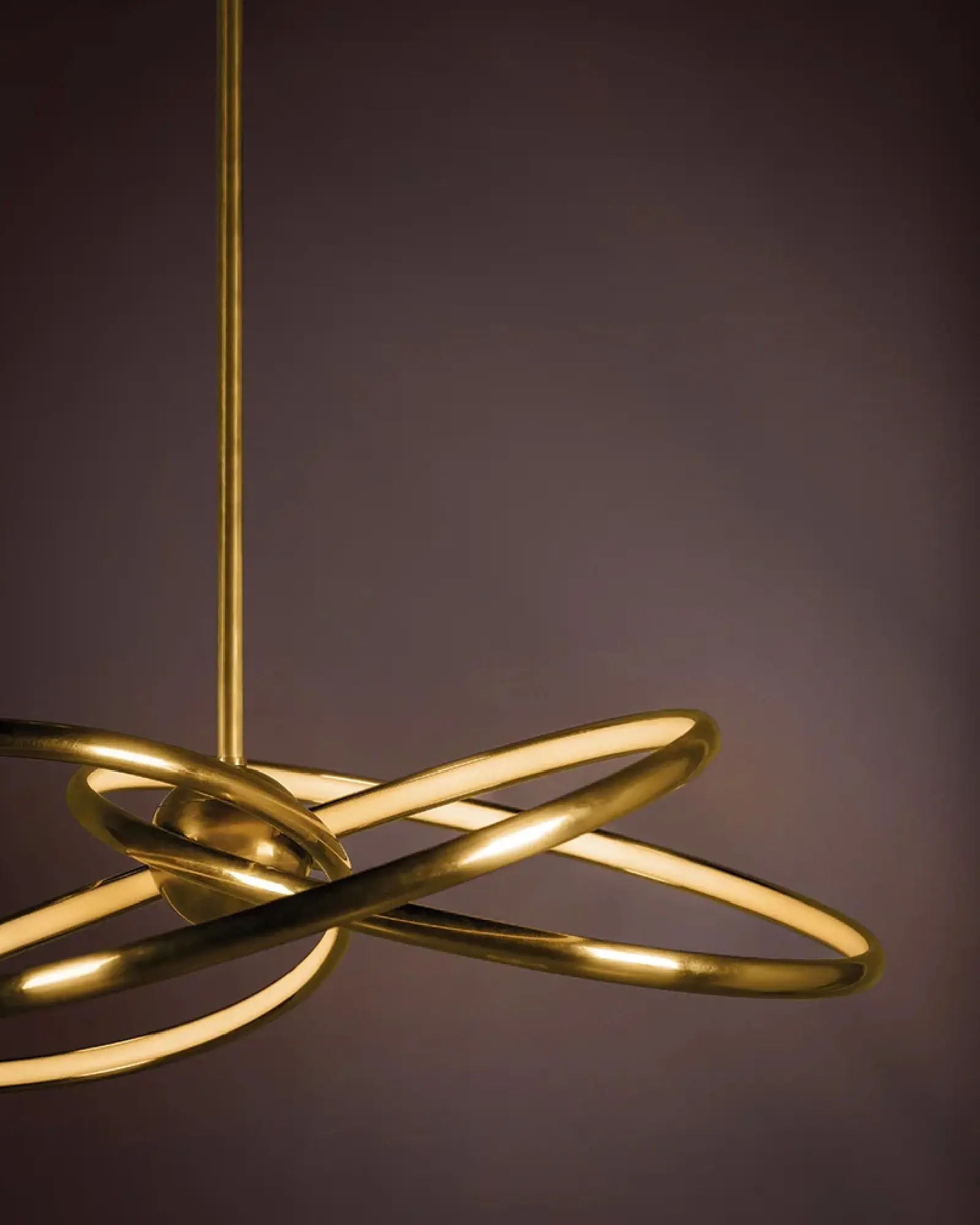Inspirado en las joyas y celestial, este diseño moderno y aireado presenta tres anillos LED, con un exterior de latón vintage y un interior de acrílico blanco mate, que orbitan alrededor de una gran esfera central. La silueta dramática y dinámica de Alula aporta energía y tranquilidad a los espacios.