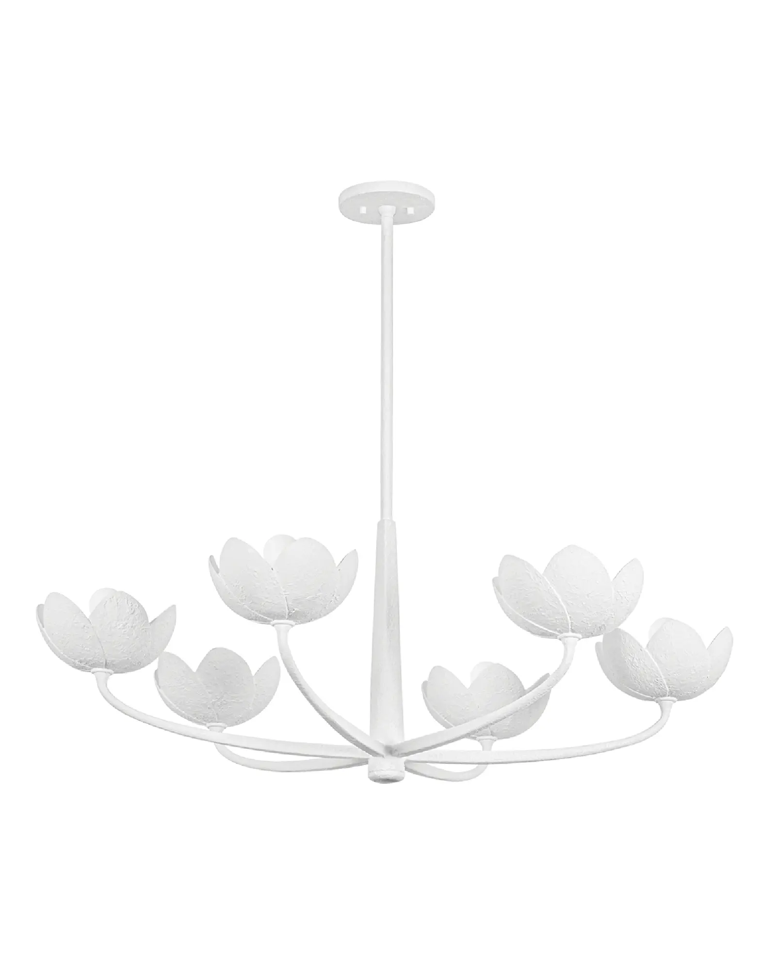 La familia Arcata, una nueva interpretación de un motivo botánico, presenta siluetas esculturales y románticas con acabados muy táctiles trabajados a mano. Los suaves brazos pasan de cuadrados a redondos, creando un aspecto dinámico que complementa las formas florales. Arcata está disponible como aplique de 1 luz y como lámparas de araña de 6 u 8 luces con la posibilidad de elegir entre el contemporáneo acabado Gesso White o el lujoso acabado Vintage Gold Leaf.