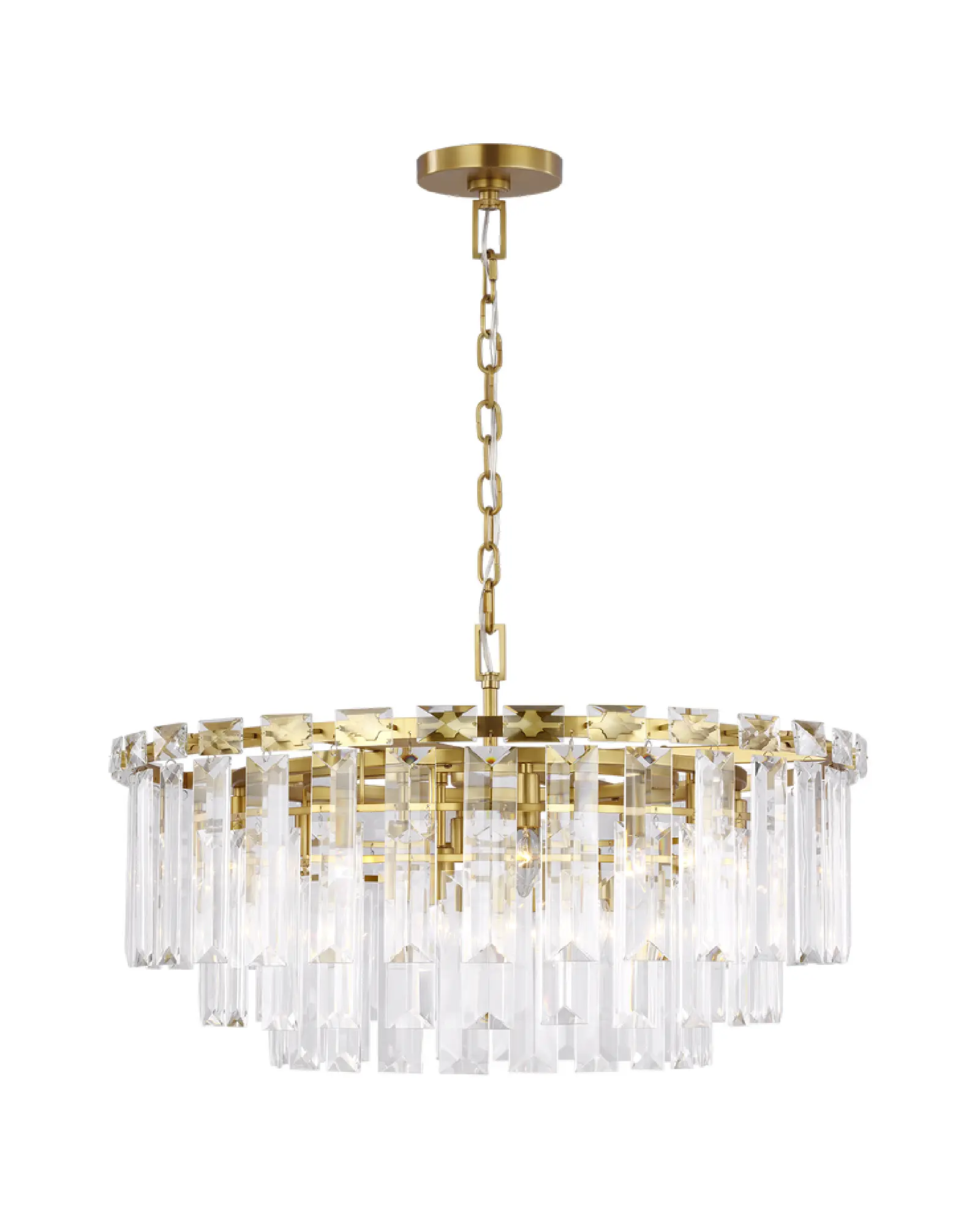 Este candil cuenta con una sorprendente variedad de cristales de vidrio transparente tallados en capas sobre un marco de metal circular. Su lámpara incandescente descansa detrás de los cristales, proyectando una luz cálida y brillante a través de las piezas facetadas para proporcionar un ambiente brillante y seductor para el hogar.