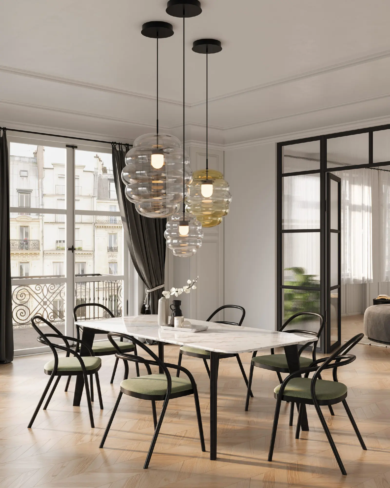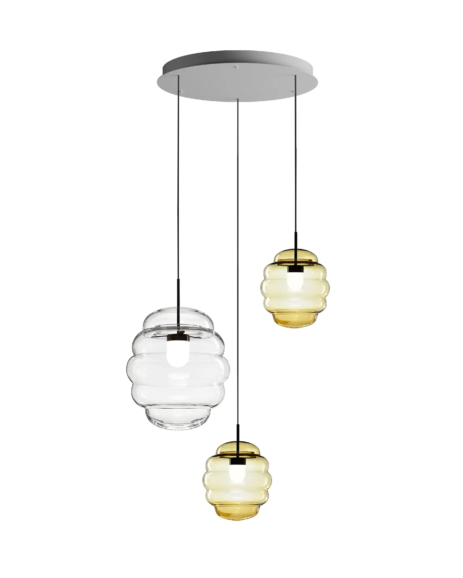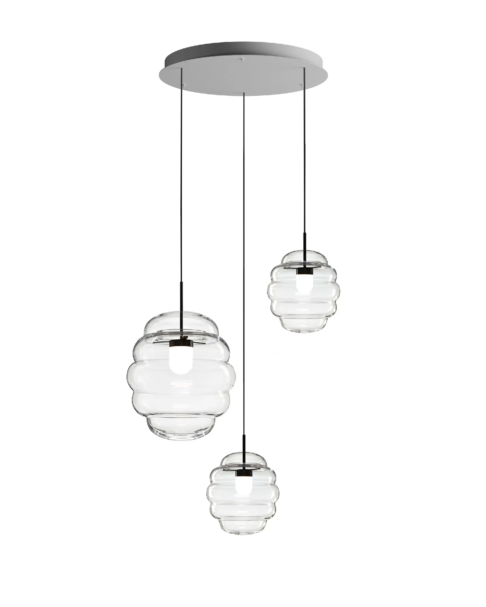 Fabricado en varios tamaños e inspirado en el movimiento de las nubes, este colgante ilumina dormitorios, salones y oficinas por igual. Este accesorio de iluminación adquiere una formación ordenada y ondulante que ejemplifica el más alto calibre de la artesanía.