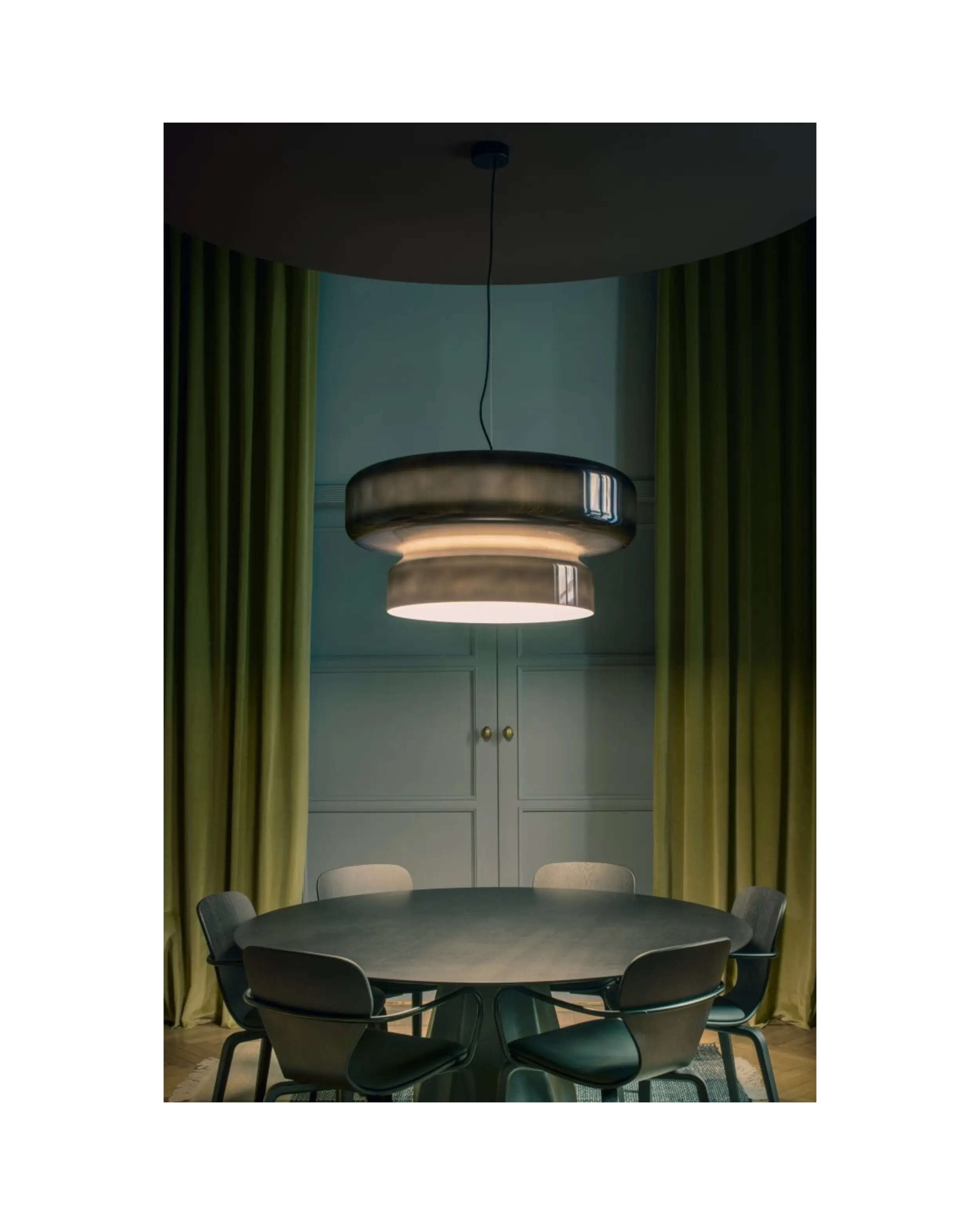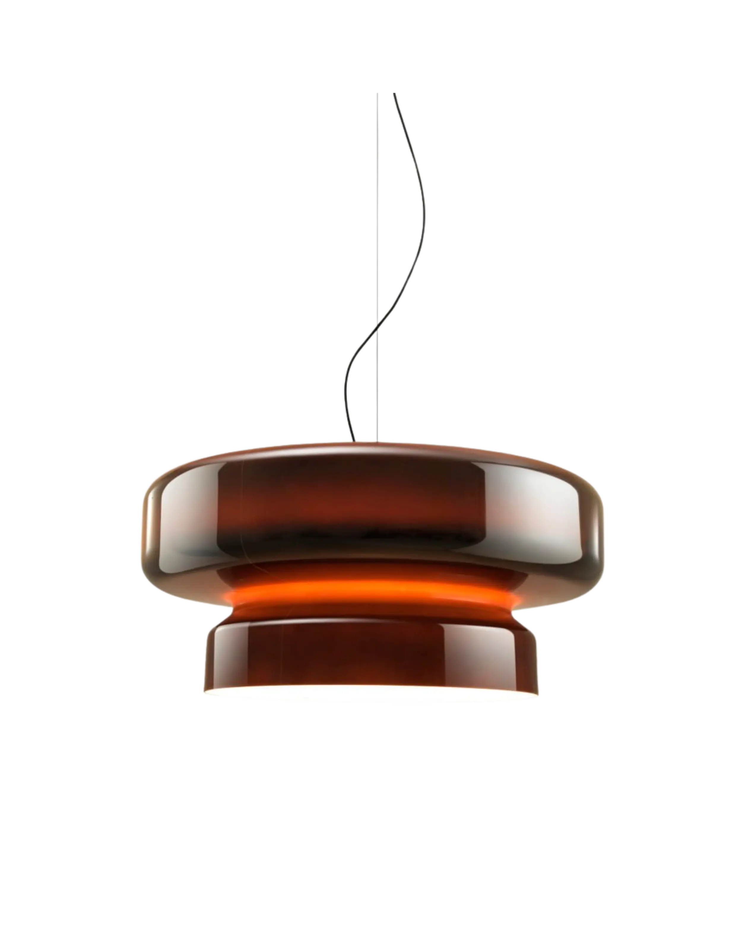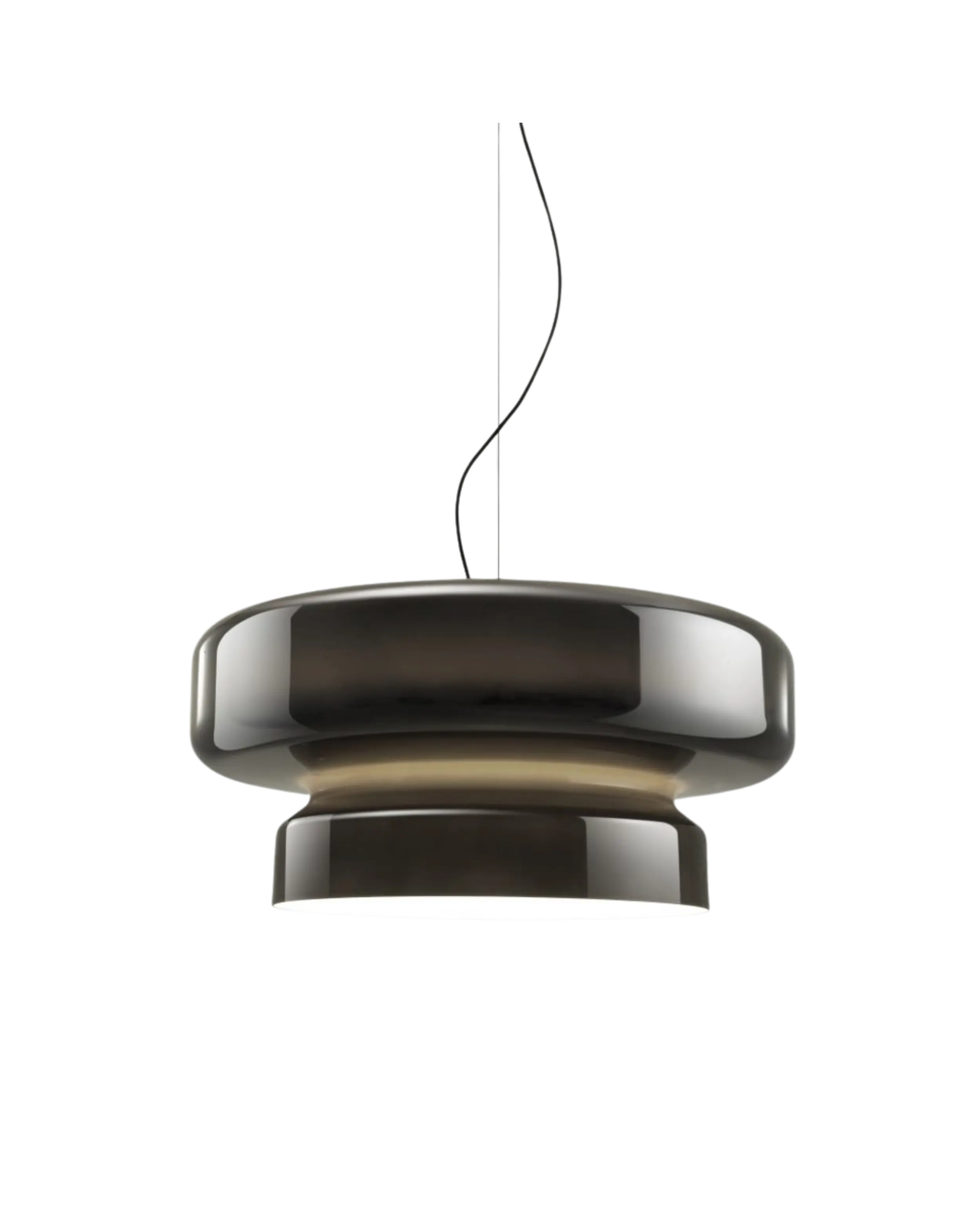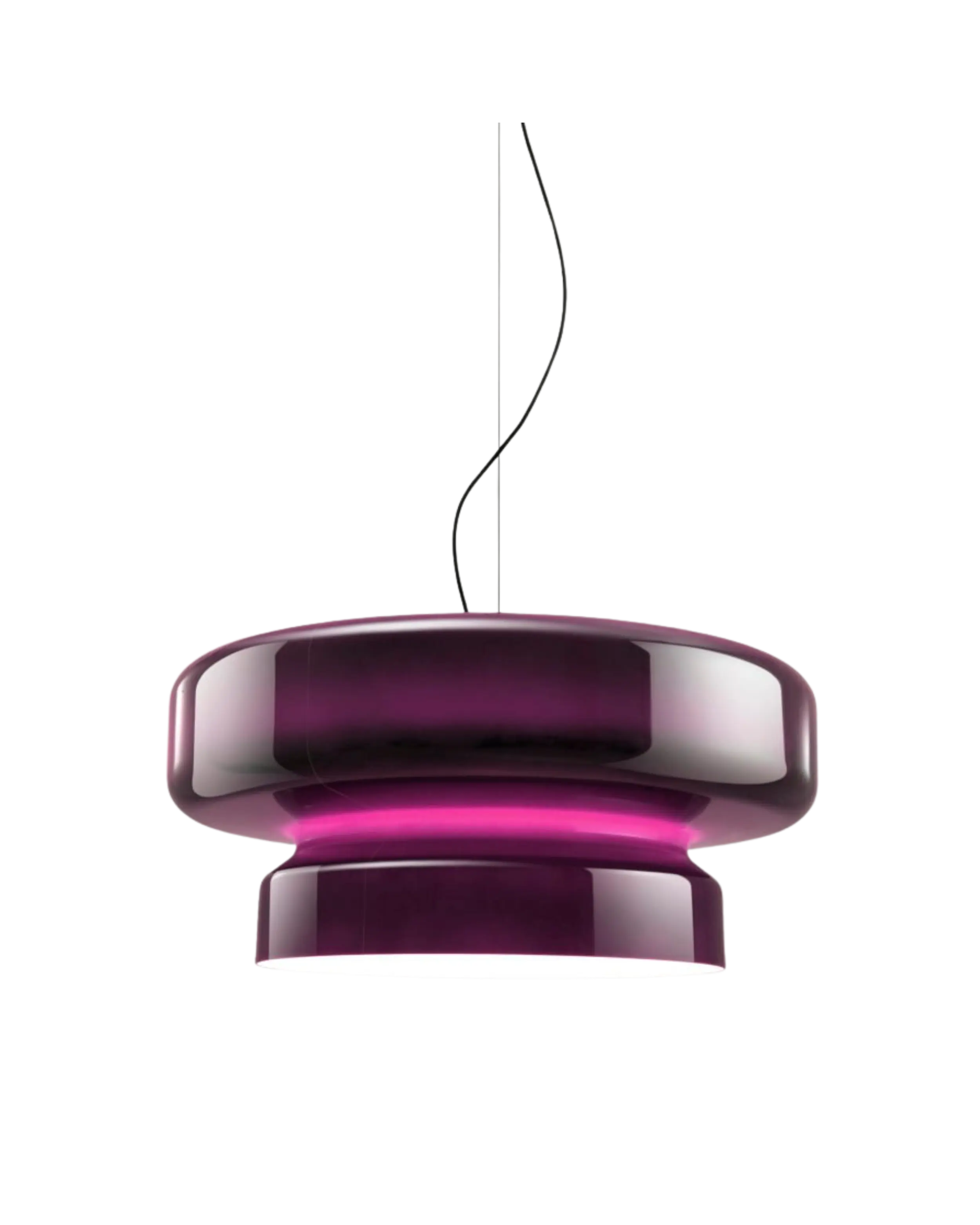 Esta lámpara muestra un perfil orgánico, nada aburrido, translúcido y que integra dos volúmenes bajo una sola forma. El resultado es una gran pantalla disponible en distintos colores que no interfieren en el interior -siempre en blanco- dando paso a una iluminación impecable, sin contaminaciones cromáticas.