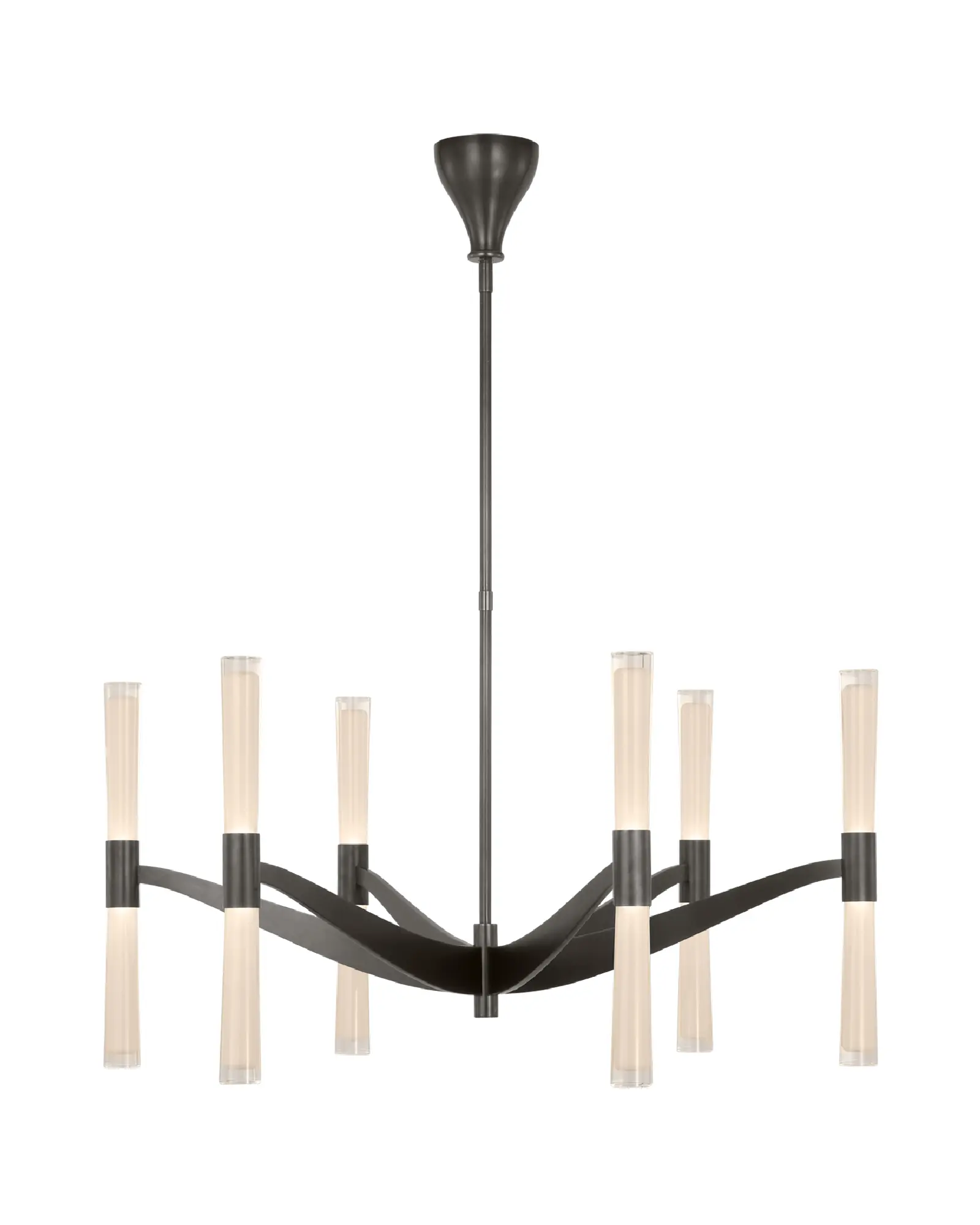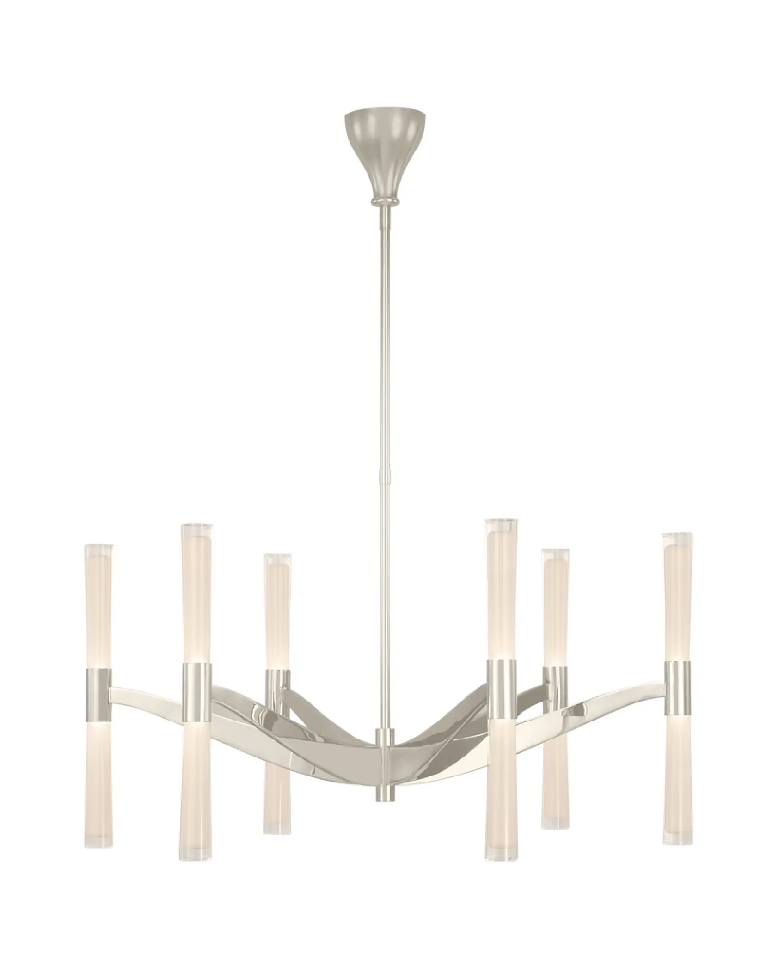 Este diseño contemporáneo, con un toque de brillo retro-moderno, destaca por su forma elegante minimalista, la cual ilumina al entorno con un resplandor ambiental uniforme.