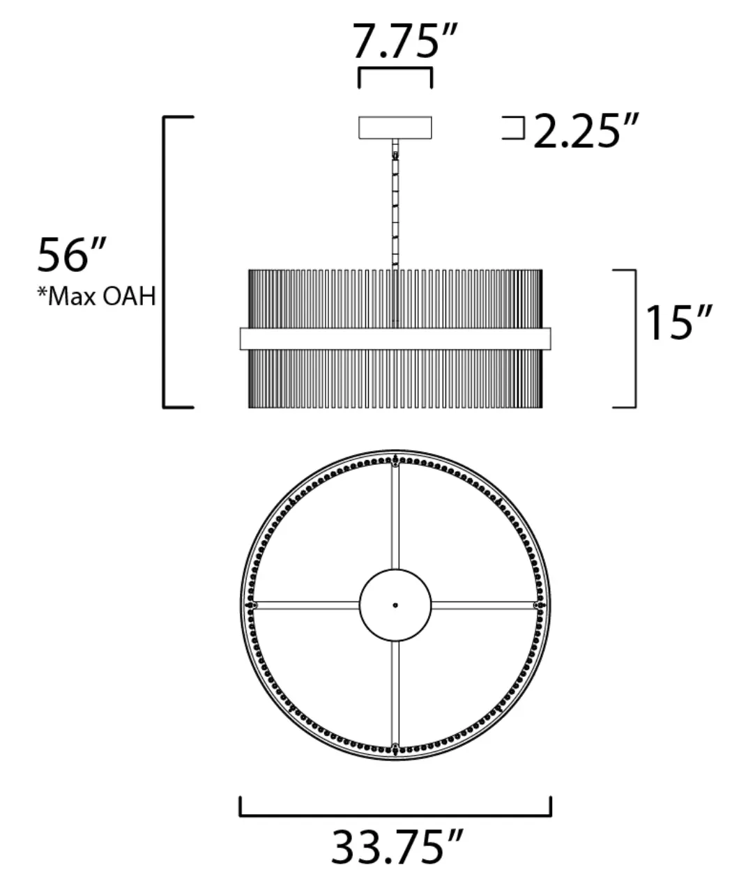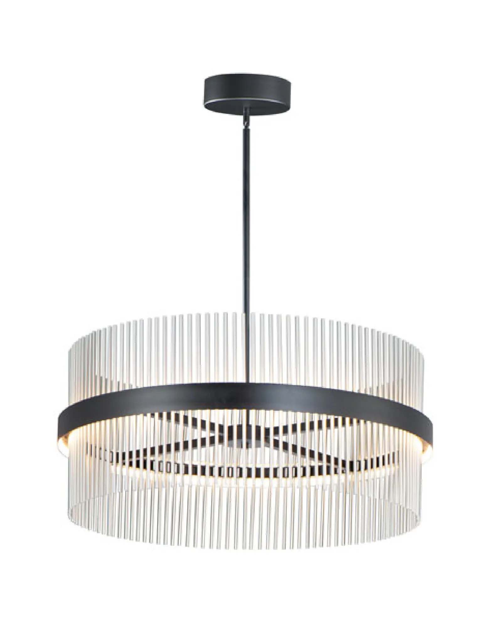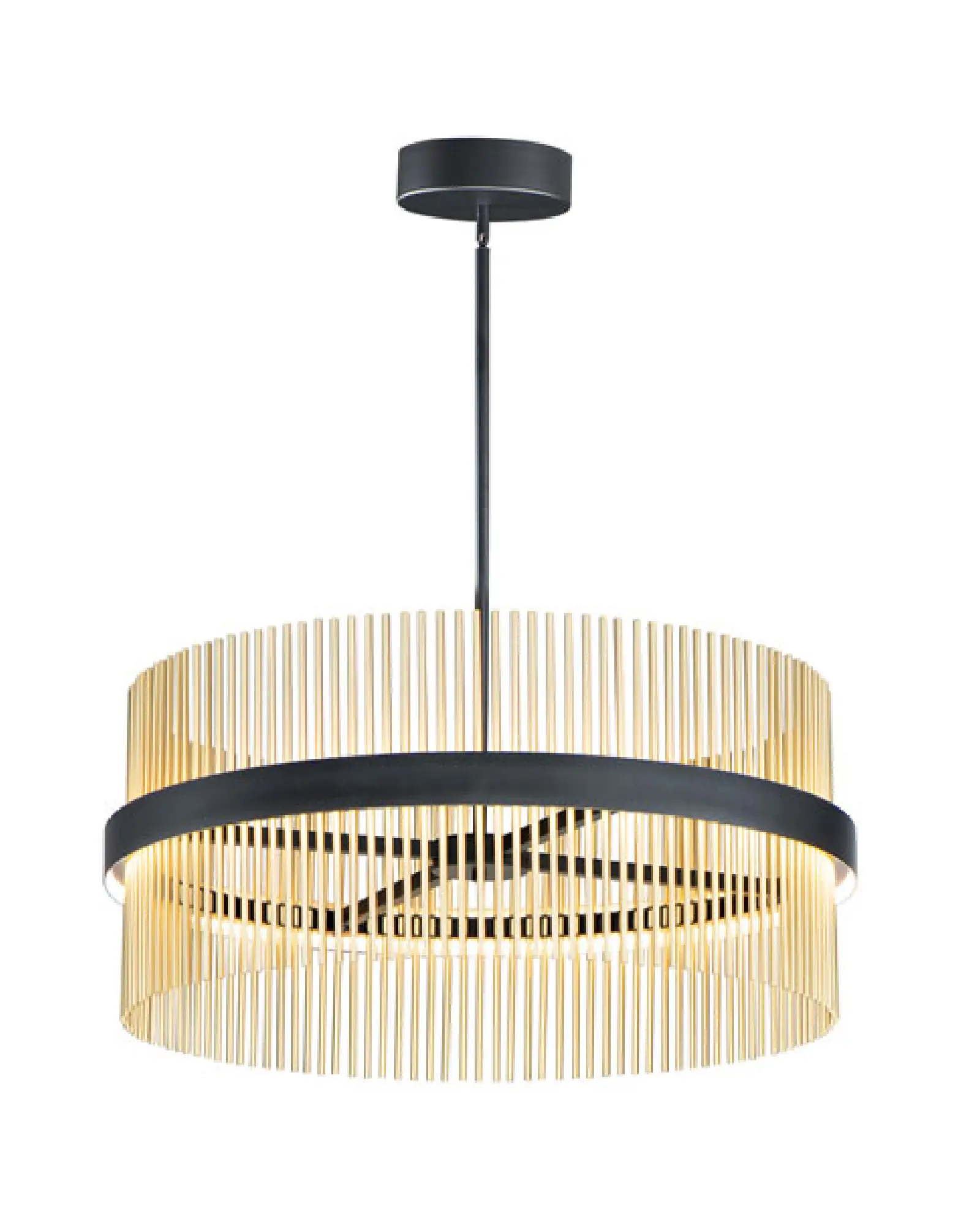 Las anchas bandas de metal negro mate soportan una fila espaciada uniformemente de tubos finos acabados en latón satinado, níquel satinado o una combinación de ambos. El elegante diseño es CCT Seleccionable que le permite alternar entre cálido 2700K a neutro 3000 o 3500K o incluso ir más brillante con 4000 y 5000K temperaturas de color. Maravíllese con la suave dispersión de luz indirecta del anillo, que proyecta la luz tanto hacia arriba como hacia abajo y hace brillar los tubos. De gran estilo y funcionalidad, las sutiles características de esta luminaria pueden transformar no sólo su aspecto, sino también el espacio en el que se instala.