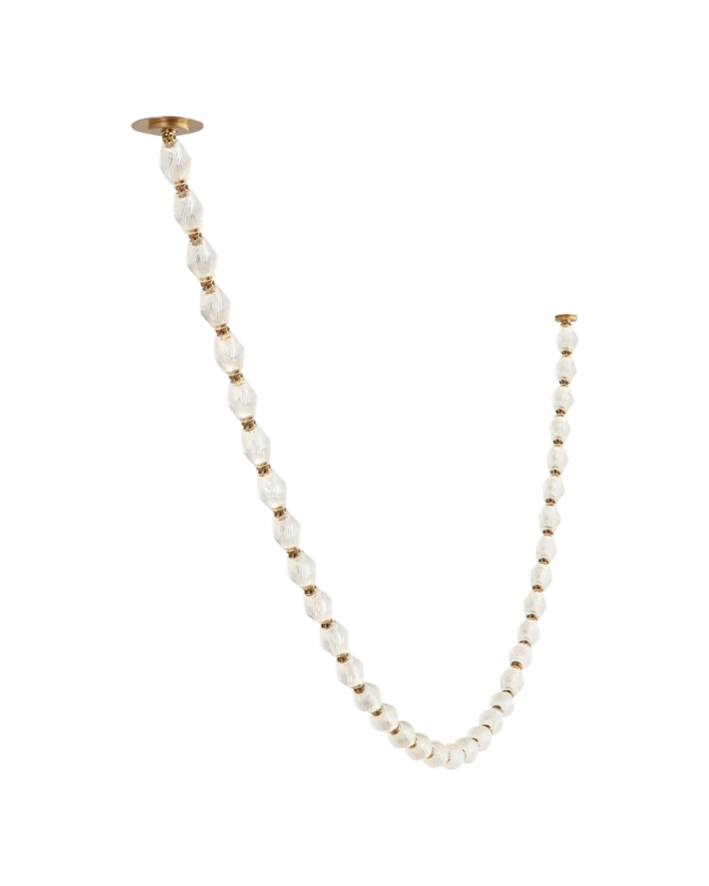 La lámpara Collier irradia lujo y sofisticación. El cristal macizo facetado encapsula completamente los módulos LED integrados, entrelazados mediante conectores de latón macizo. Disponible en tiras de múltiples longitudes para una personalización excepcional. Crea una increíble escultura de luz con una iluminación impactante. Los conectores de latón natural están diseñados a medida para sujetar el cristal y realzar la belleza de la pieza.