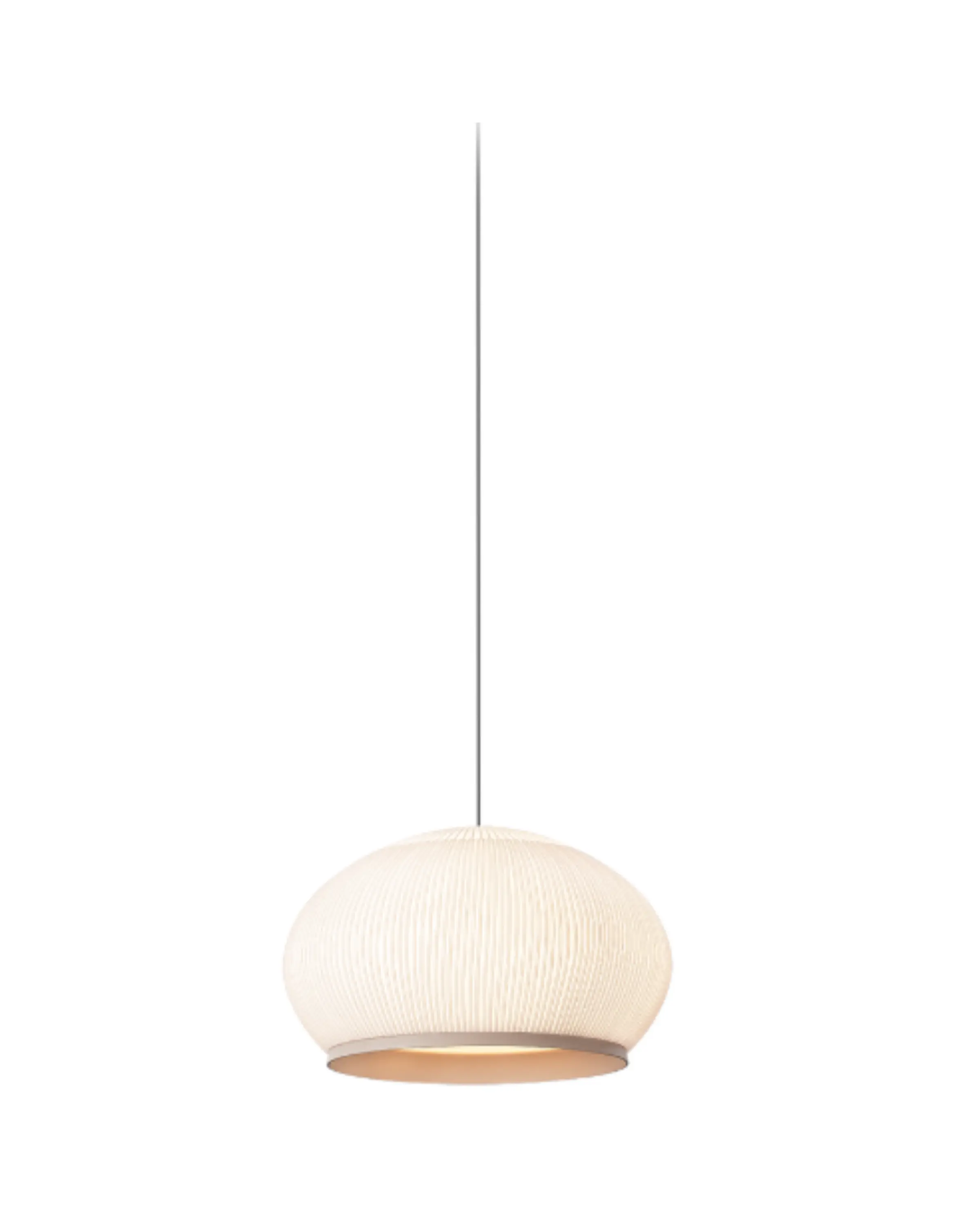 La lámpara colgante Knit LED de Vibia ha sido diseñada por Meike Harde. Esta lámpara colgante tiene forma de globo y permanece abierta en la parte inferior para permitir que la luz del LED integrado se difunda desde arriba. La estructura de aluminio y latón de esta lámpara colgante es muy resistente, y este motivo de durabilidad se refleja en la experta artesanía de la pantalla de poliéster ignífugo. Mediante un regulador de intensidad de 0-10 V, se puede ajustar el nivel de luminosidad según las necesidades. Esta luminaria, adaptable a techos inclinados, está fabricada siguiendo la tradición española del diseño.