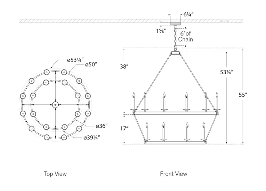 Candil de doble nivel, disponible en distintos tamaños y acabados