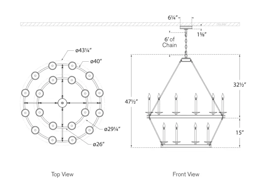 Candil de doble nivel, disponible en distintos tamaños y acabados