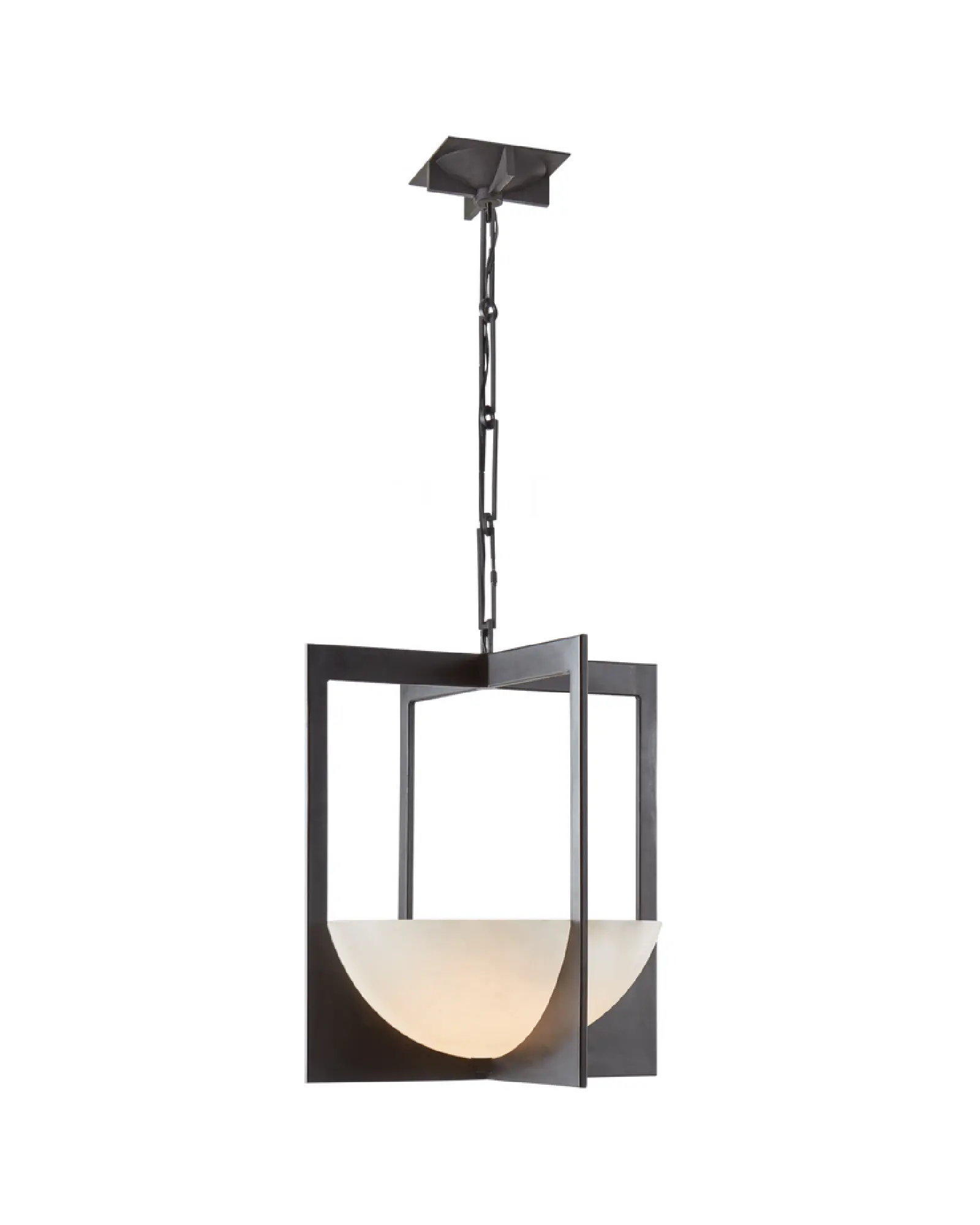La atrevida Michaela combina una estética minimalista con el arte del viejo mundo. Los planos de hierro forjado a mano se entrelazan en diseños calados y opacos, sosteniendo un cuenco de cristal translúcido en forma de media luna que difunde una luz cálida, ideal para entradas o comedores contemporáneos.