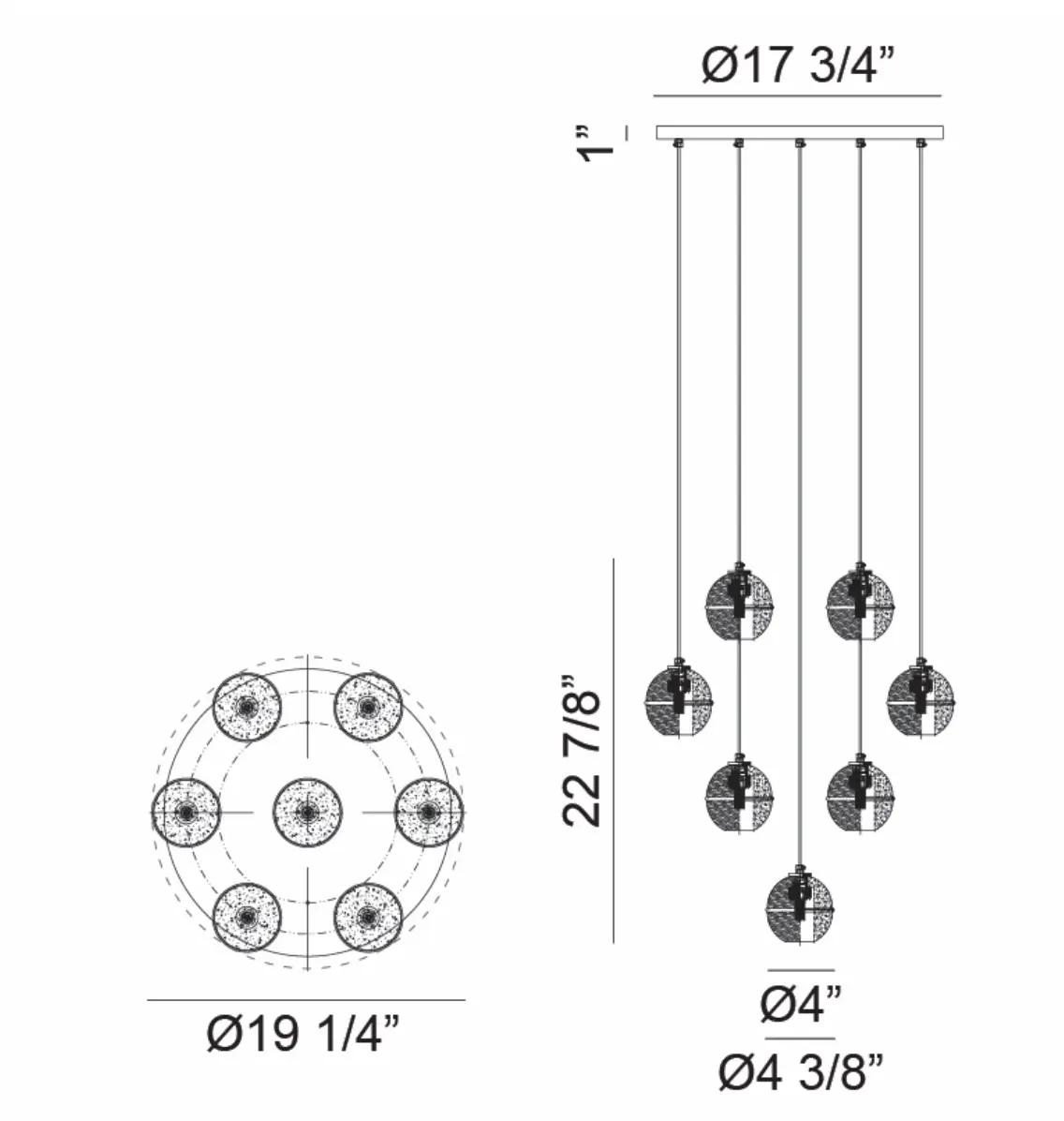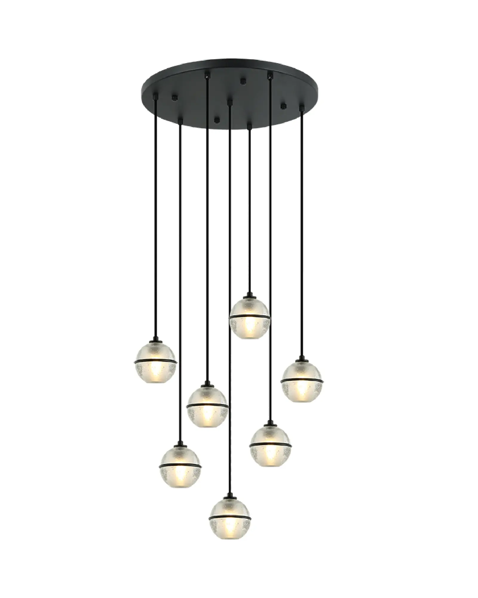 Este modelo de la Colección Misty, es una composición de 7 colgantes, ideal para crear un ambiente moderno a cualquier espacio