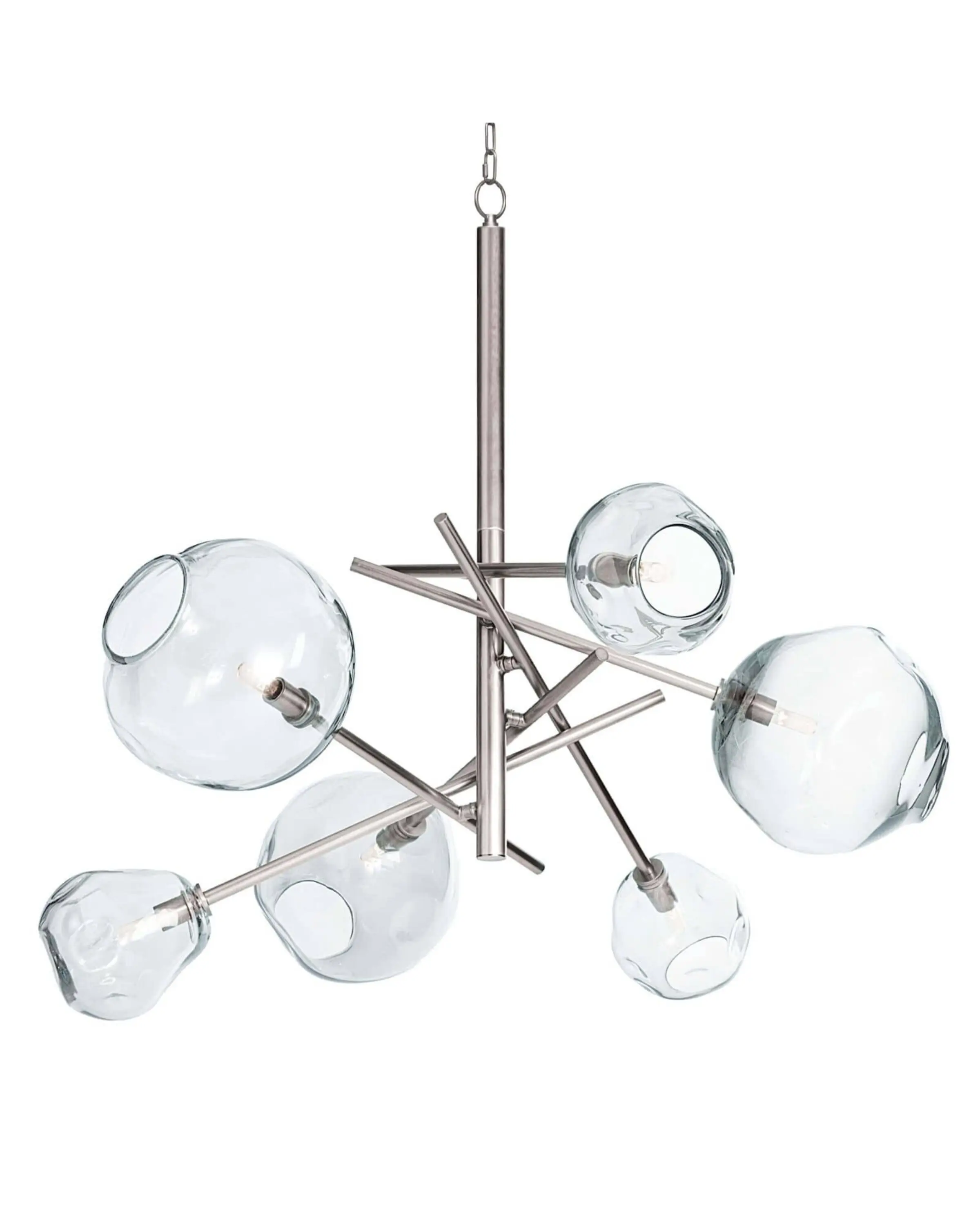 Esta lámpara de cristal ahumado, una pieza llamativa que resulta igual de impresionante sola o en pareja, es perfecta para iluminar mesas de comedor, islas de cocina y cualquier otro espacio que necesite una iluminación moderna y espectacular.