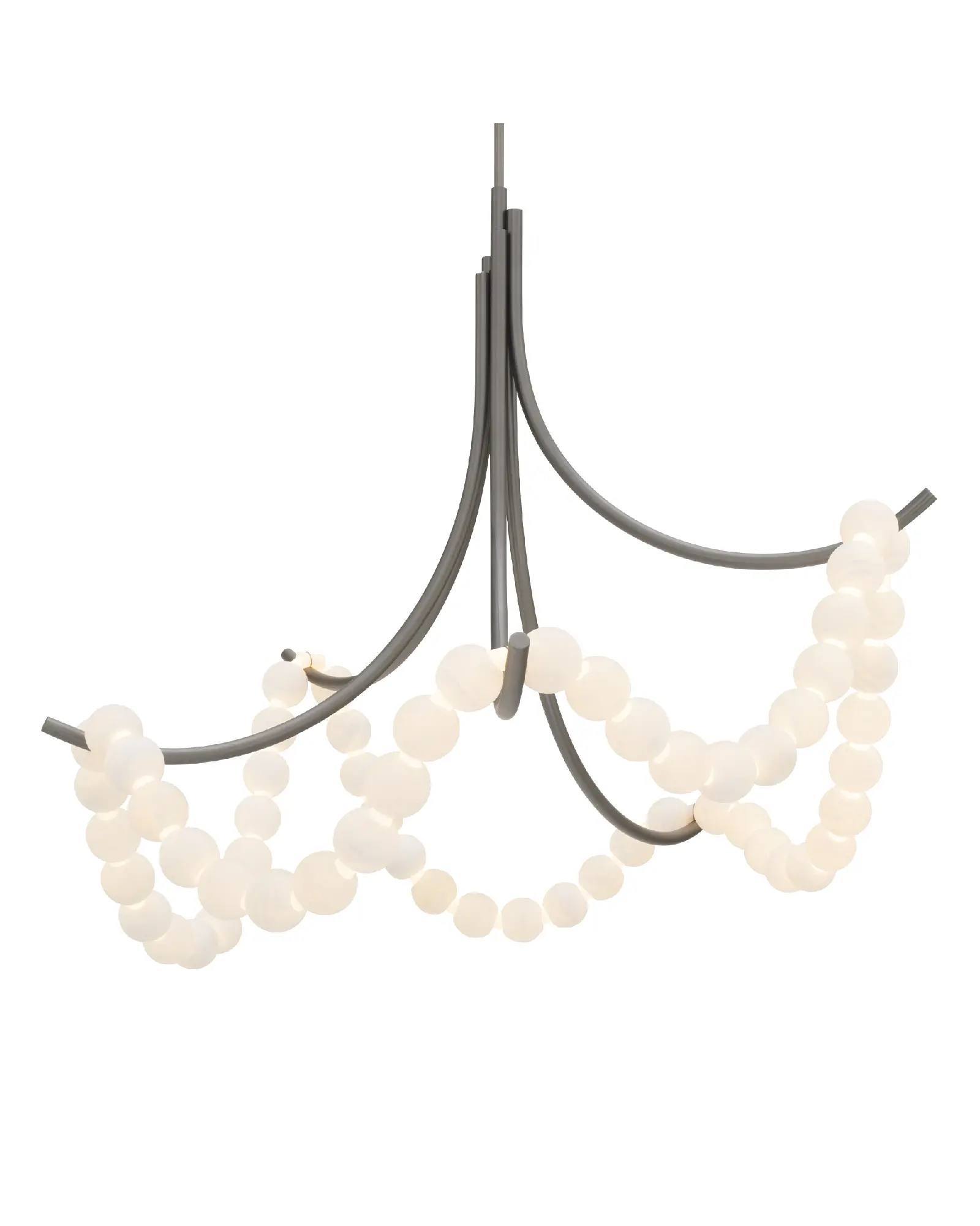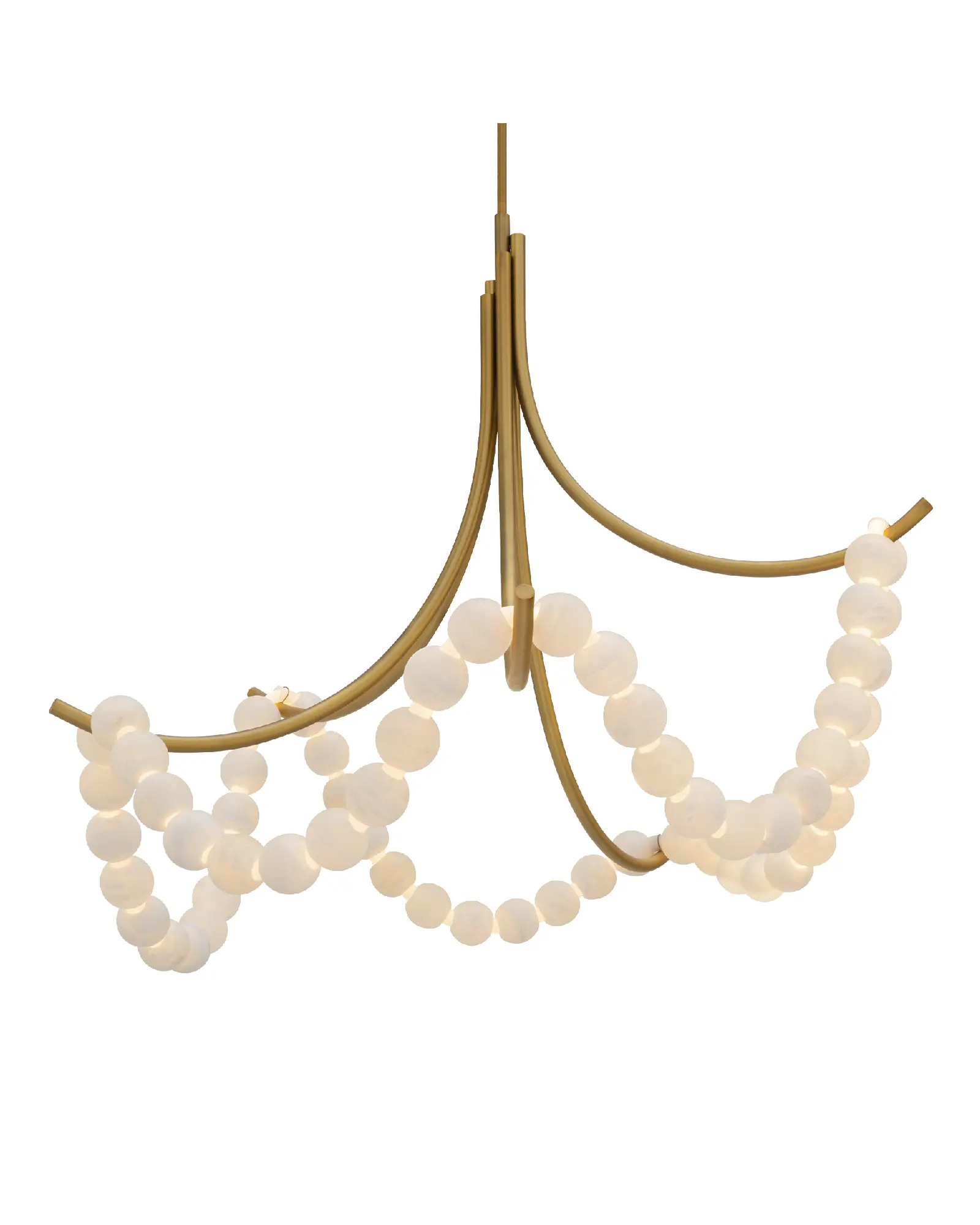 Las cuentas de alabastro español están ensartadas en un bucle de luces LED y rodeadas por brazos metálicos brillantes. Esta encantadora luminaria dará un toque especial a tu techo.