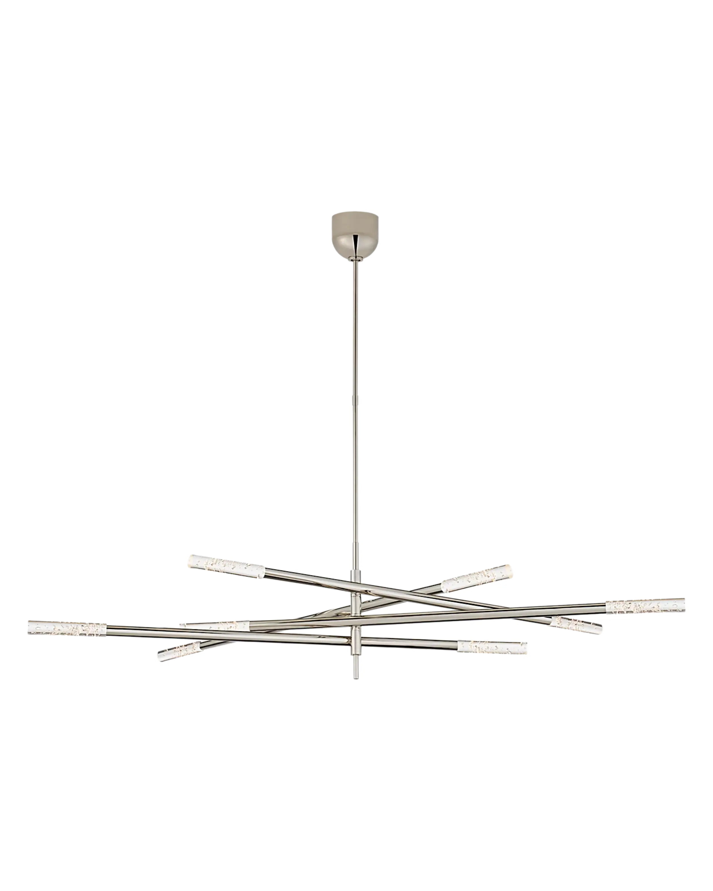 Candil moderno de estructura metálicacombinado con cristal opaco o de vidrio esmerilado en figura asimetríca y alargada