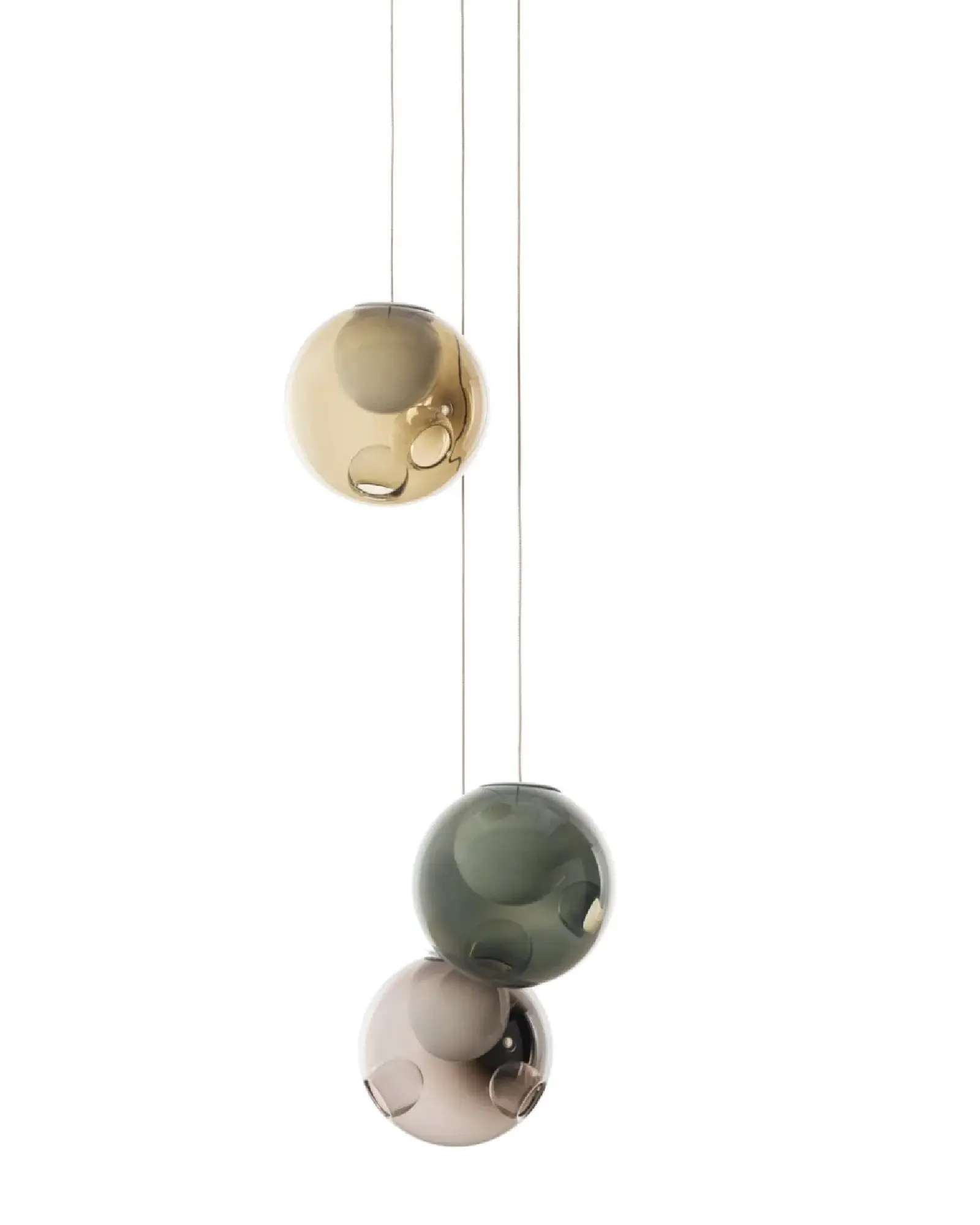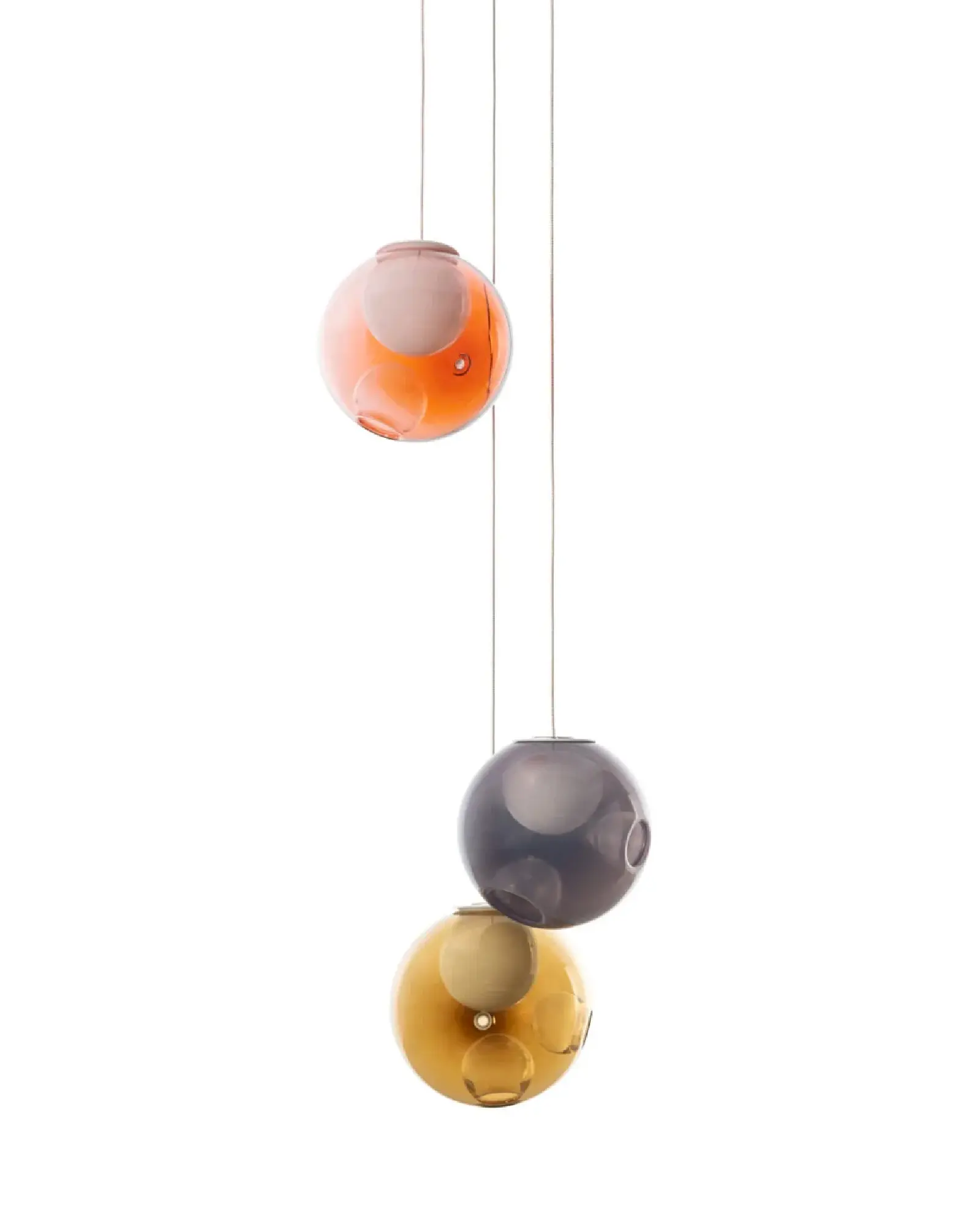 La serie 28 se elabora utilizando una innovadora técnica de soplado de vidrio, creando esferas con inclusiones empotradas que capturan y difunden la luz. Se puede personalizar los acabados dentro de los 70 colores diferentes y en opciones de suspensión, superficie, suelo y sobremesa, esta versátil serie aporta un resplandor etéreo a cualquier ambiente. Las medidas pueden variar.