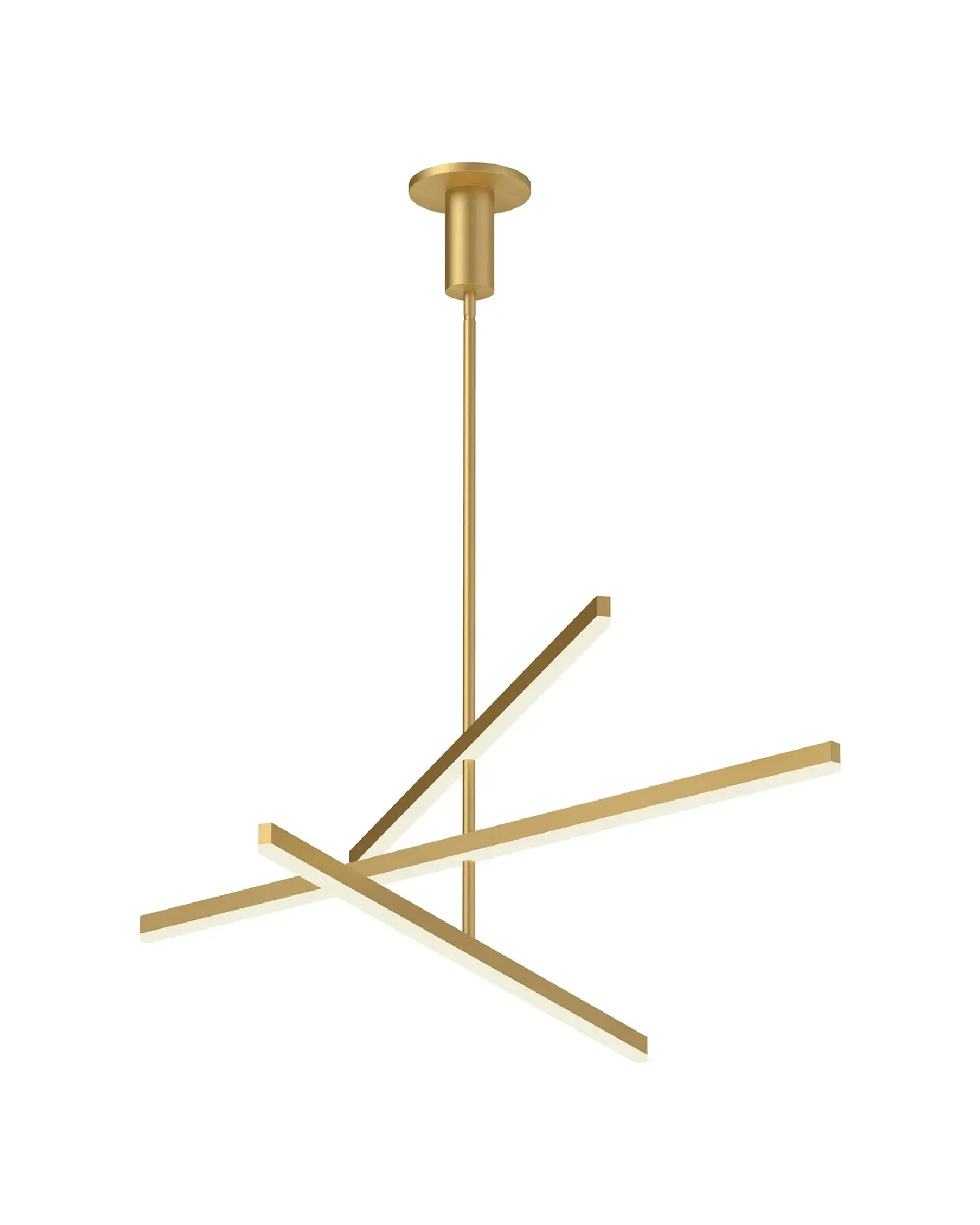 Trío de luces lineales, suspendidas en un eje central de aluminio.