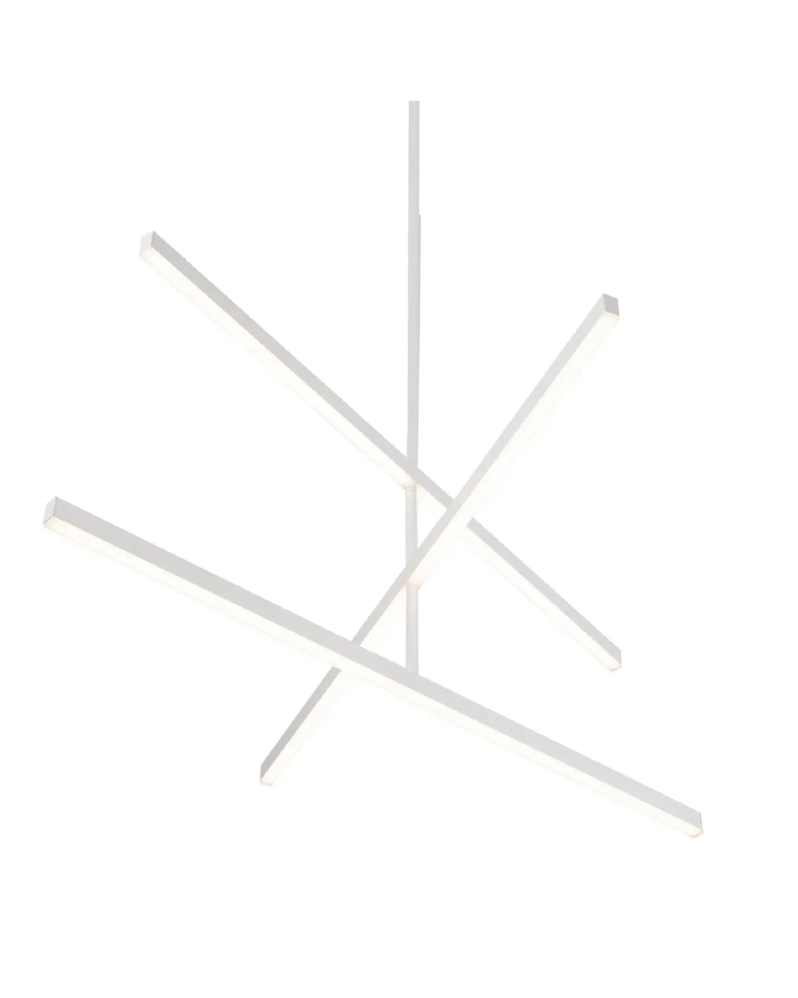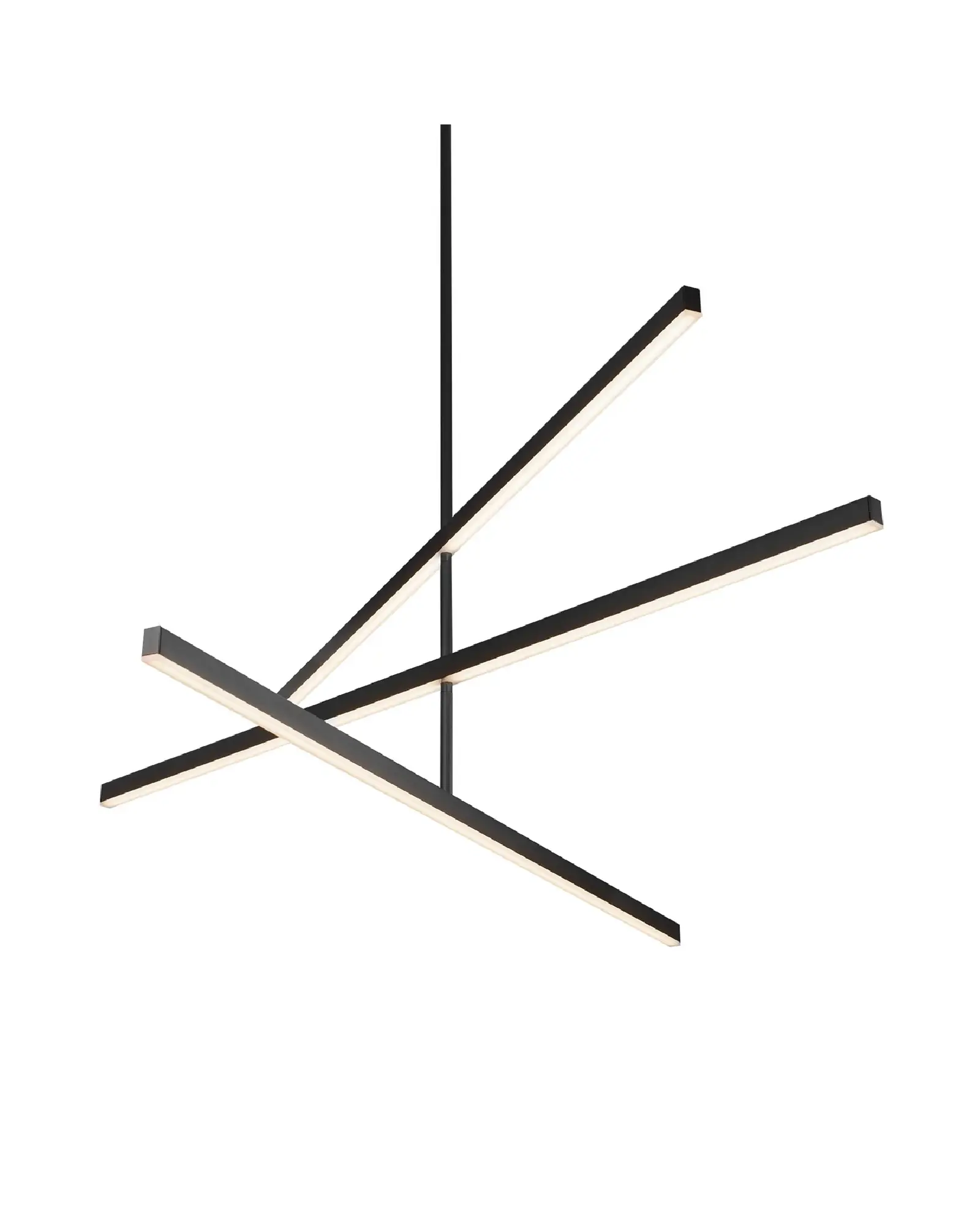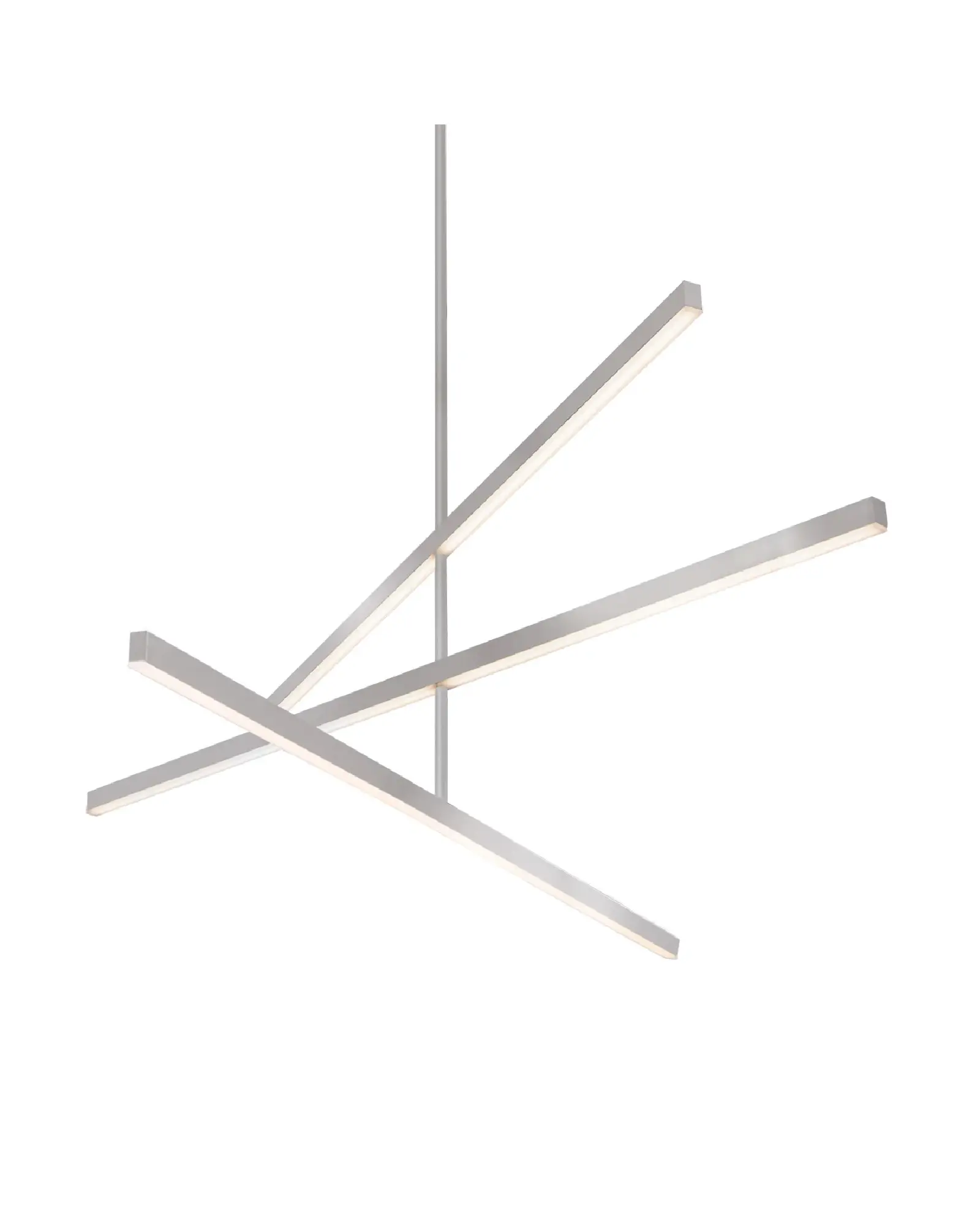 Las luminarias lineales pueden configurarse a diferentes alturas y ángulos para crear distintas orientaciones escultóricas. Ordenadas en paralelas limpias, o mezcladas en una asimetría juguetona, Vega puede personalizarse para complementar cualquier espacio.
