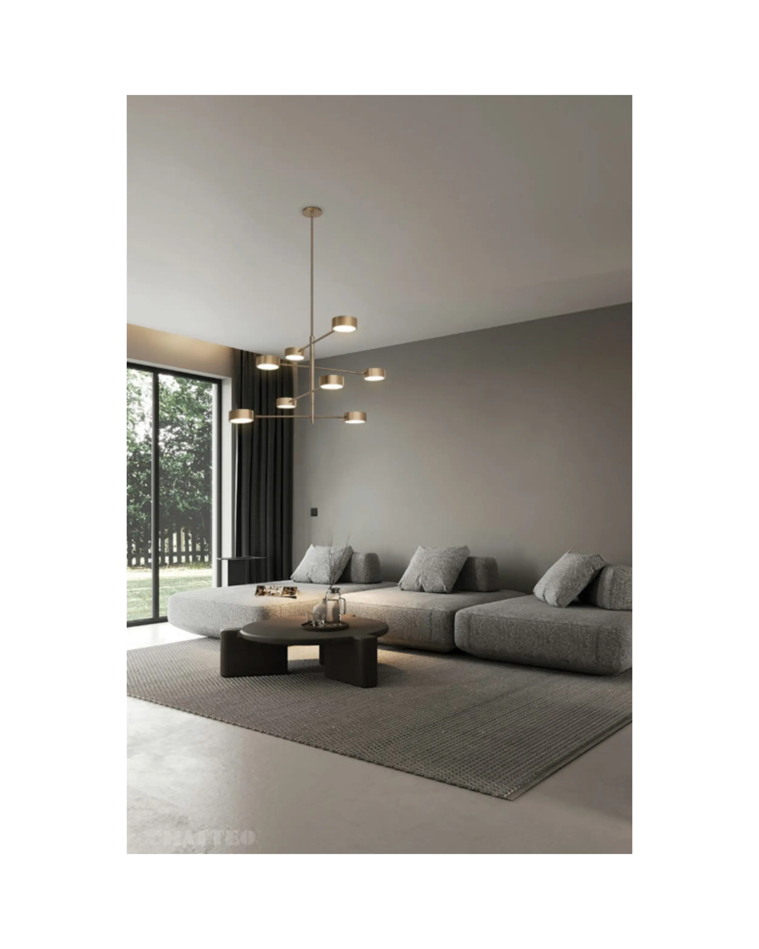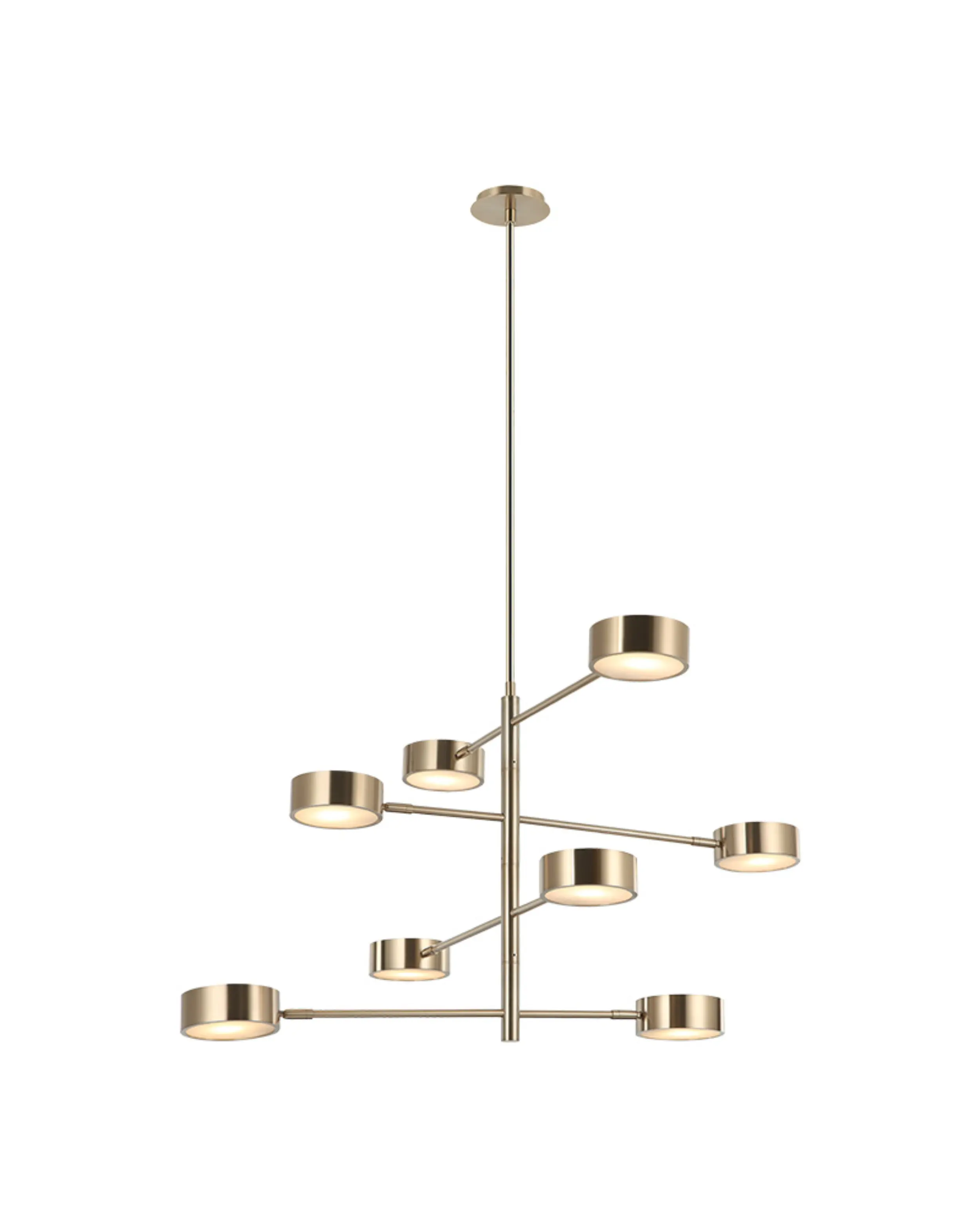 Candil de diferentes alturas con estética arquitectónica y limpia con vidrio de alabastro.