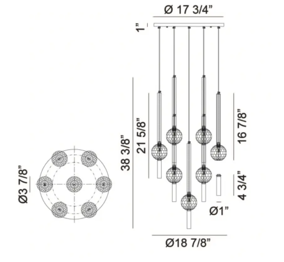 Este modelo de la colección Windchimer es un candil de 7 luces que da estilo a cada interior.