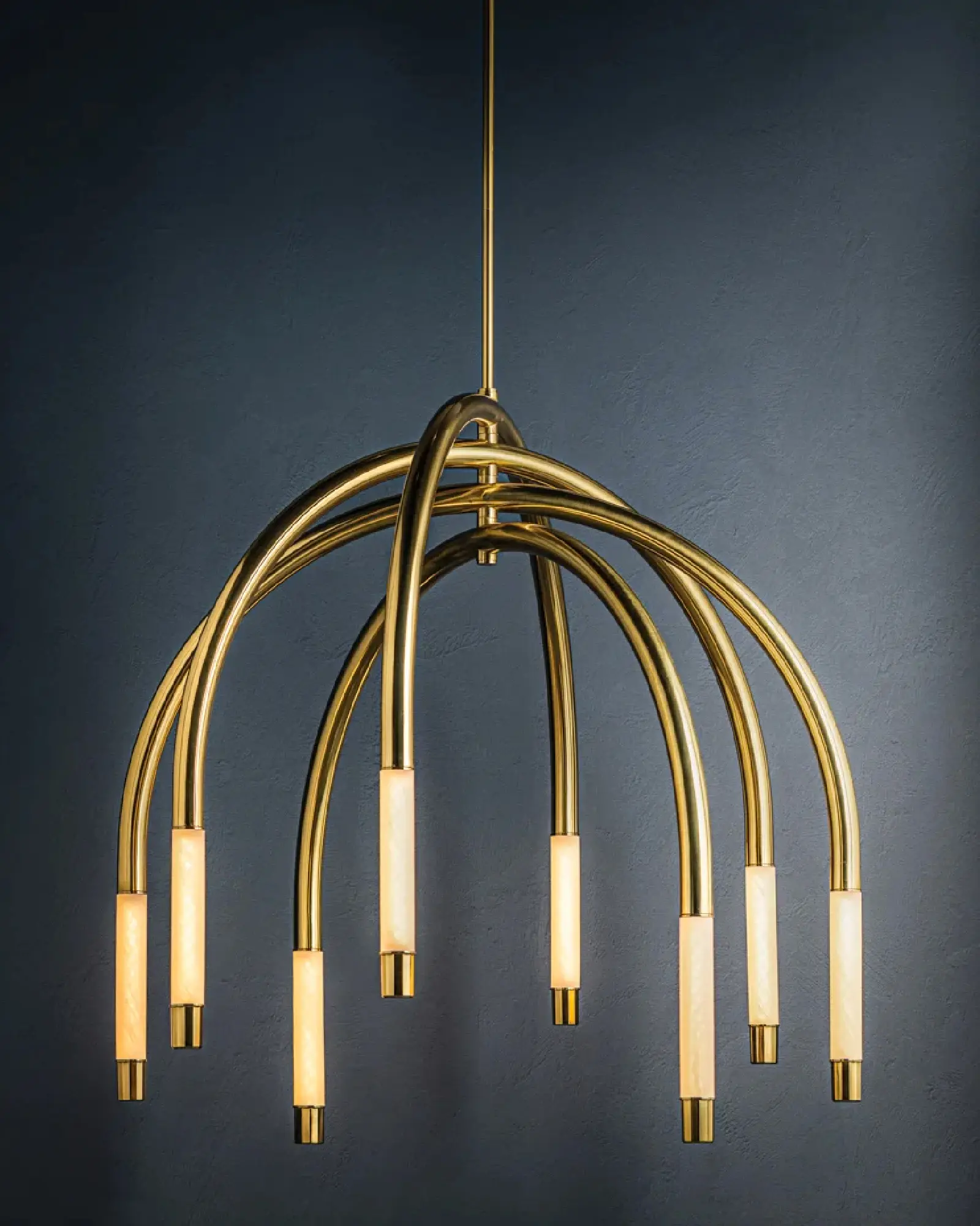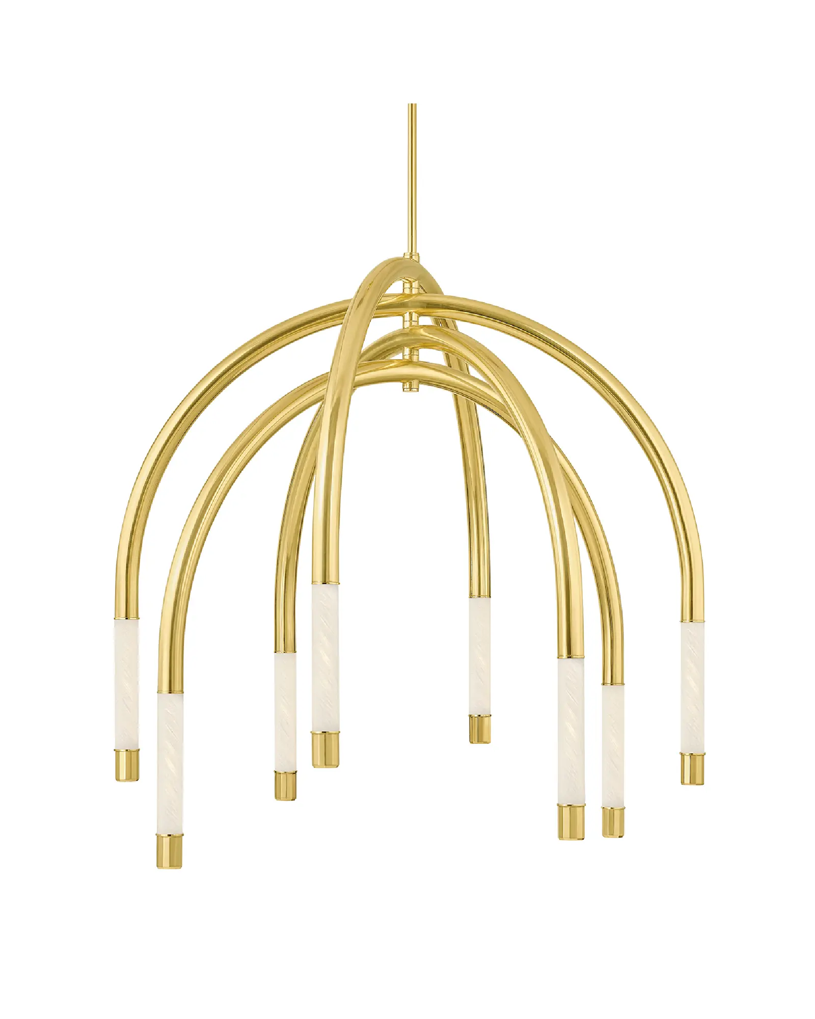 Con reminiscencias de un eslabón de cadena grueso e individual o de un hermoso pendiente moderno, Zeme se reconoce al instante como una creación de Noz Nozawa. Su silueta sencilla pero exagerada resulta novedosa y fresca a la vez que comprensible. La luz LED integrada introduce un toque de innovación, mientras que el cristal grabado en forma de nube y el acabado Vintage Polished Brass hacen un guiño al glamour vintage. Zeme está disponible en araña de 6 u 8 luces, así como en aplique de 2 luces. Forma parte de nuestra colección Noz Nozawa.