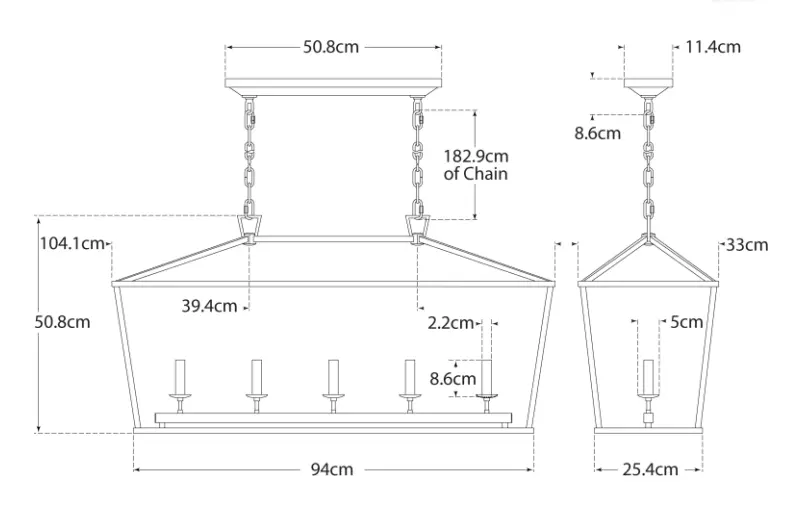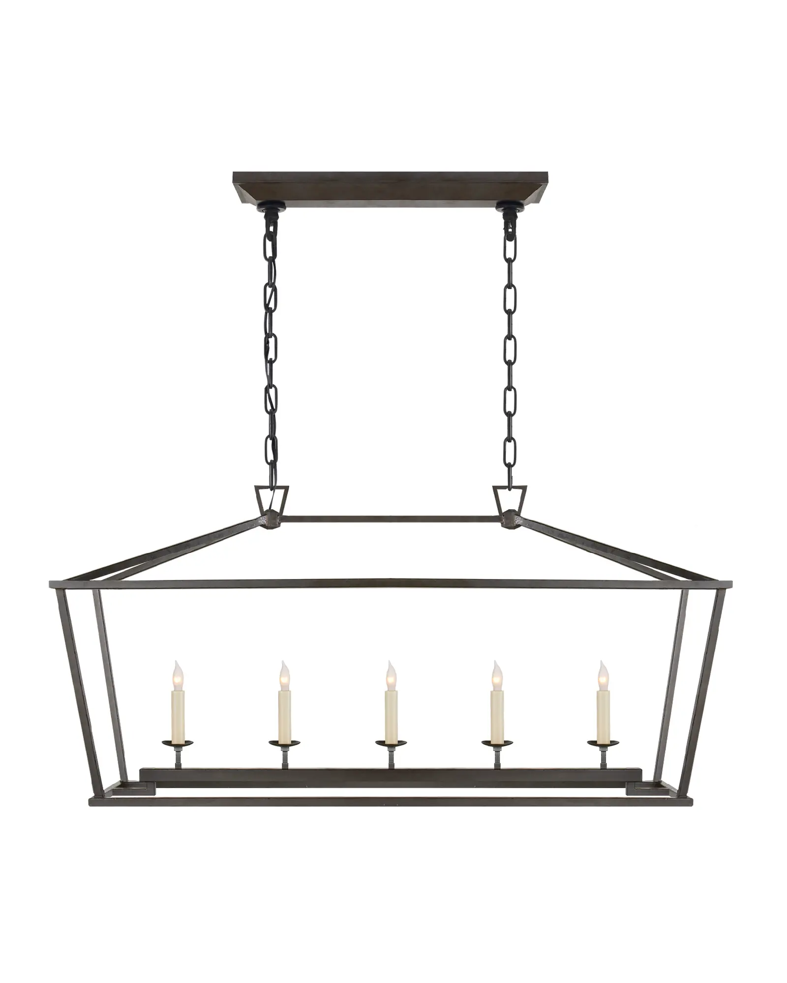La serie Darlana de Chapman & Myers equilibra las proporciones clásicas. Un marco de acero abierto con esquinas ligeramente desplazadas y un distintivo detalle de lazo superior triangular mezcla lo tradicional y lo minimalista y añade refinamiento a la forma clásica de la linterna. Las formas geométricas añaden una estructura moderna sin abrumar a los interiores más informales. Desde faroles de una sola luz hasta grandes candelabros escalonados, la serie Darlana crea un punto focal al aire libre, en entradas, sobre islas de cocina y en comedores o salones.