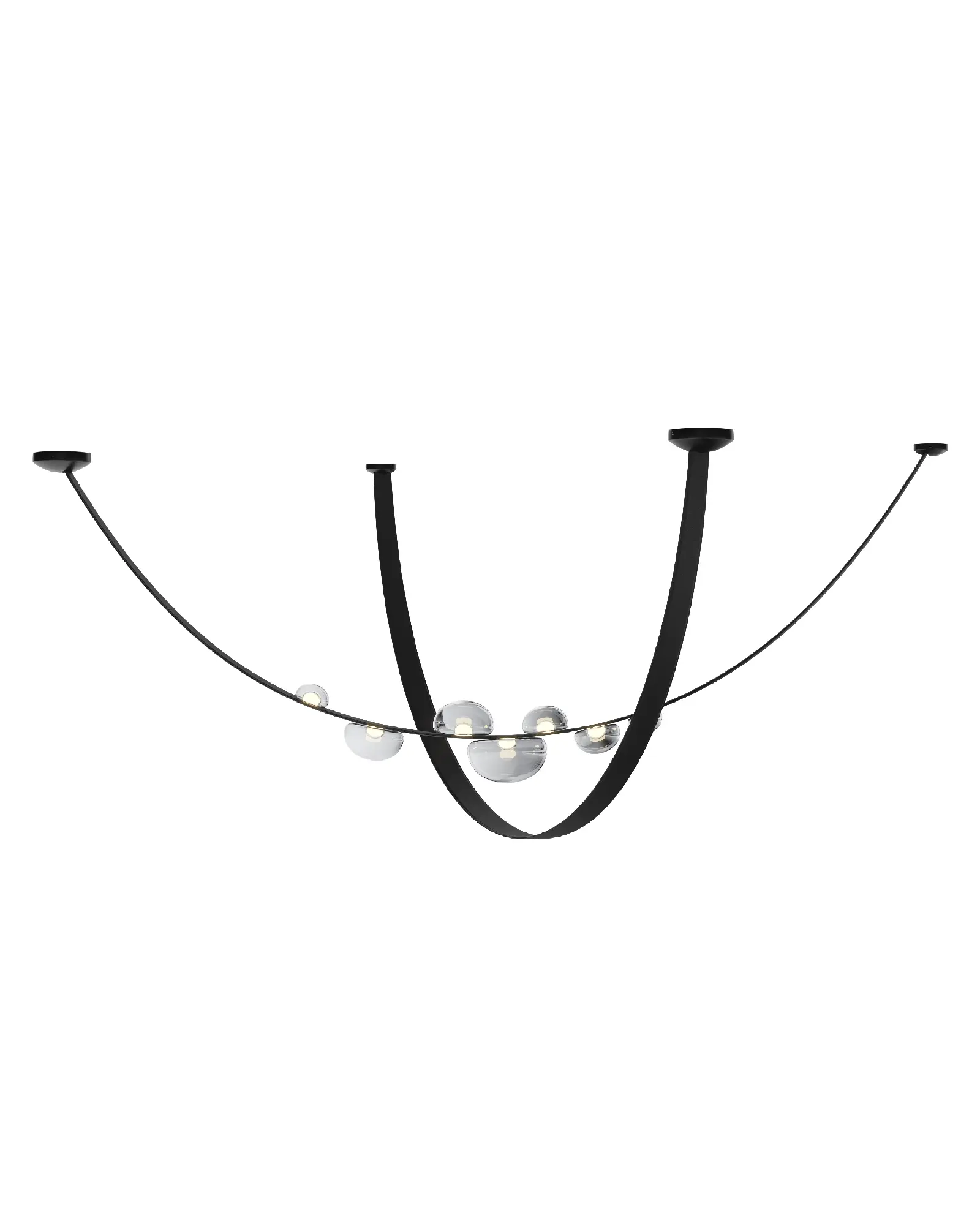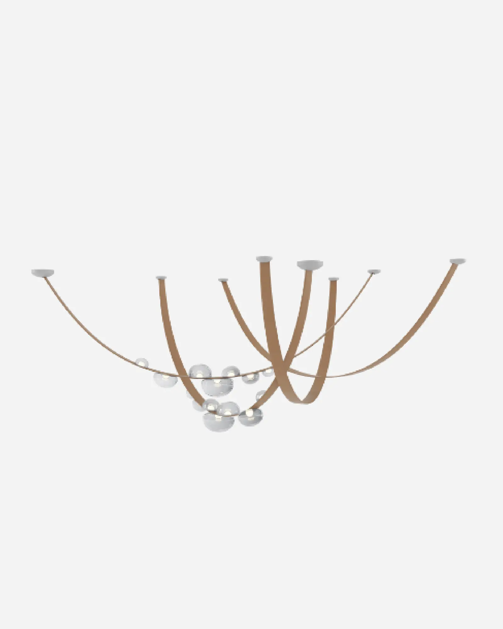 La colección Dew Drops, se creó para captar la fugaz belleza del rocío matutino, que se adhiere a las briznas de hierba. Iluminados por una fuente de luz interna que ofrece una experiencia estética excepcional, los objetos de cristal, con toques de iridiscencia, se adhieren firmemente a bandas cosidas a mano de un material innovador.