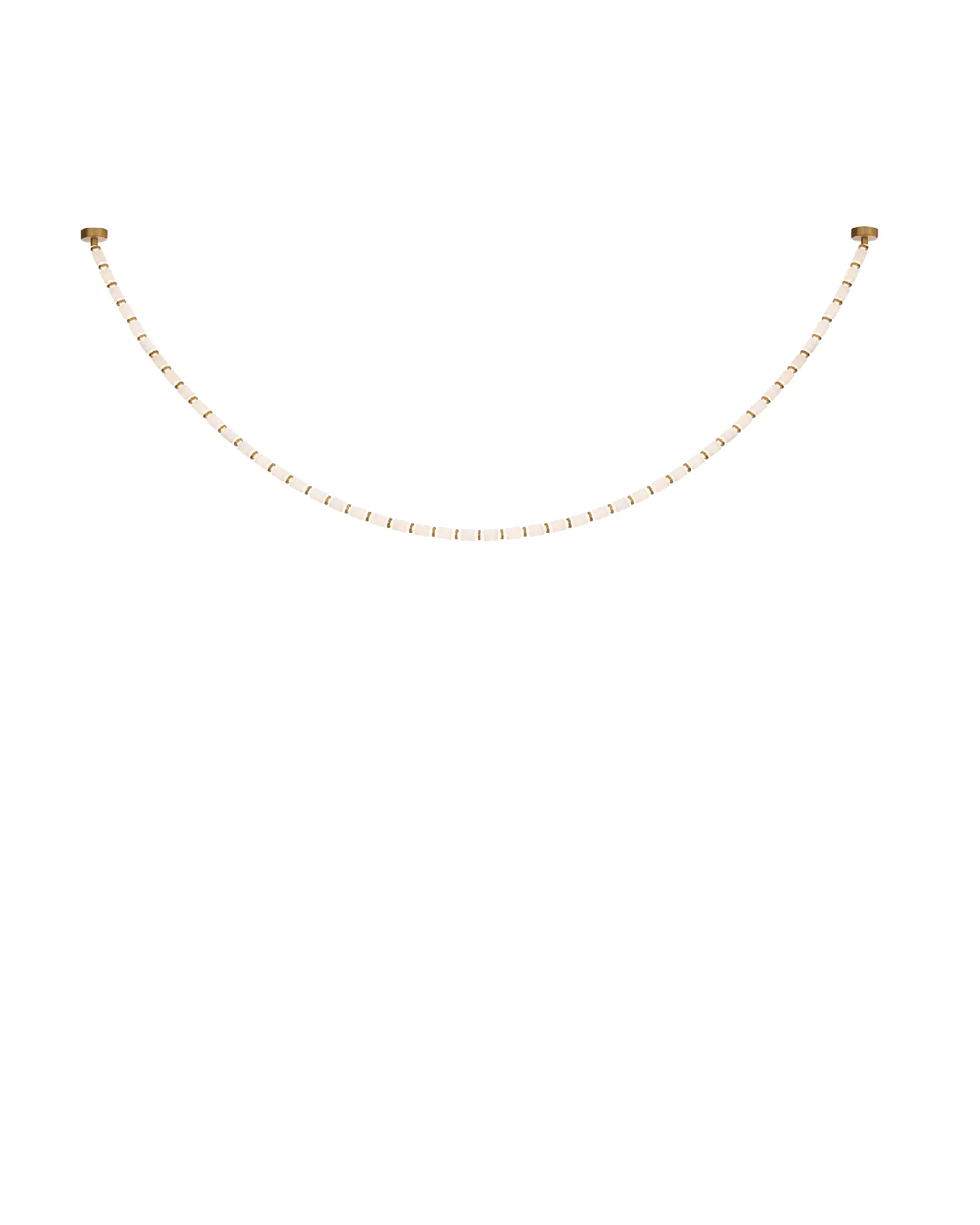 Intemporal y de buen gusto. Cilindros de alabastro español natural y brillantes collares metálicos adornan una hebra de sílice, creando una presencia de gema.