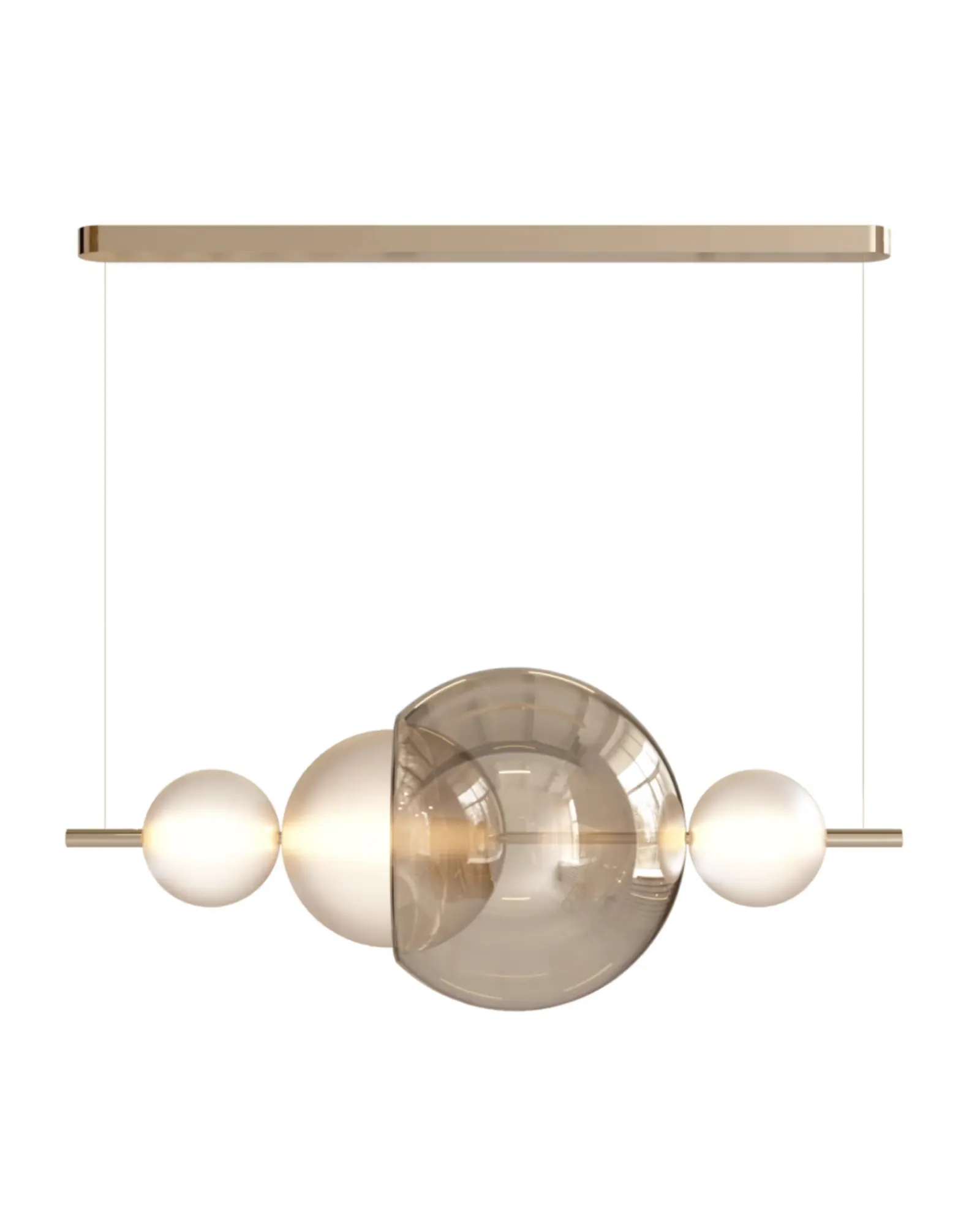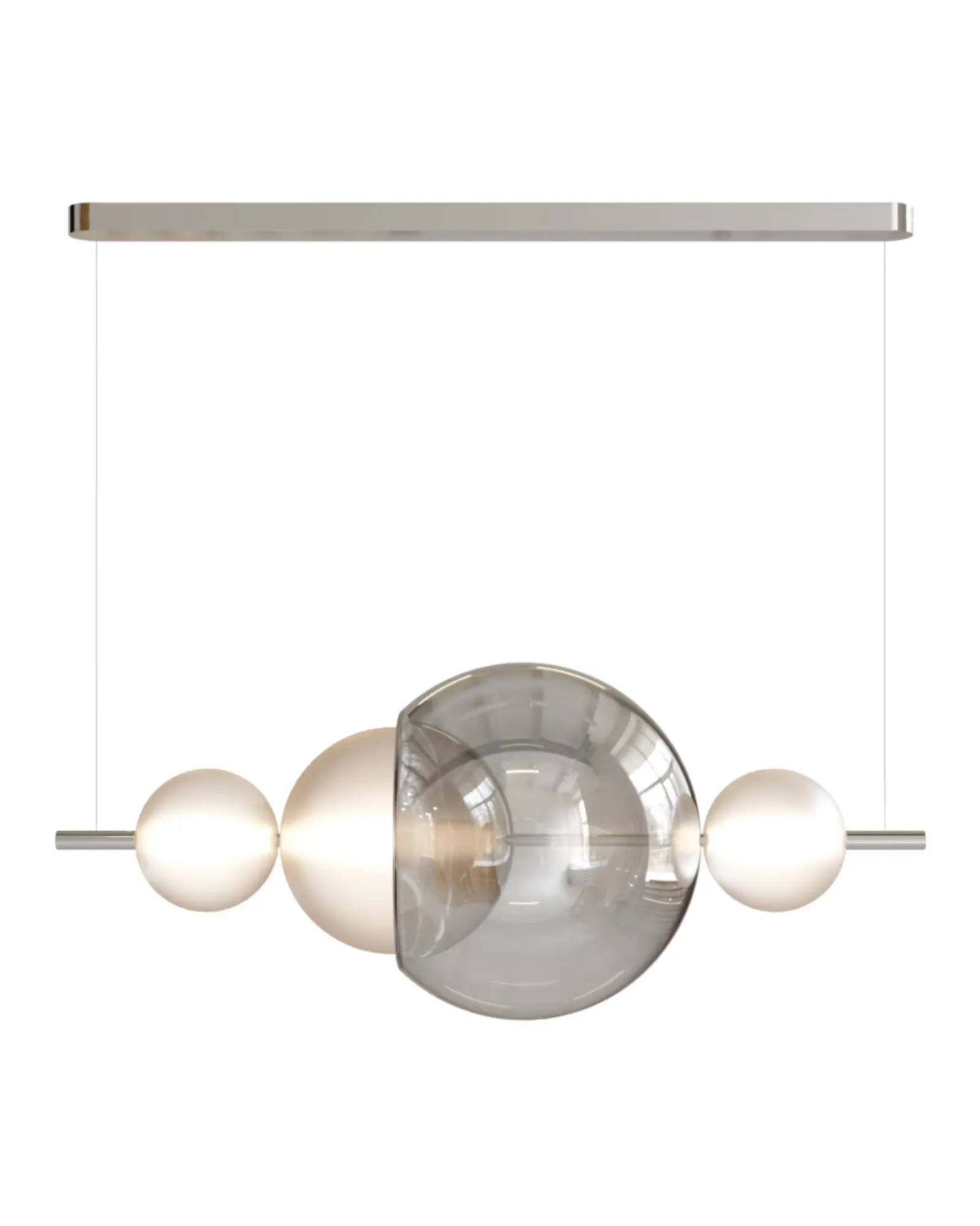 La suspensión lineal Galileo es ideal para comedores, salas de conferencias o recepciones. Alinea múltiples esferas luminosas y elementos reflectantes para crear una iluminación dinámica y un ritmo visual, equilibrando la luz y la sombra con precisión arquitectónica.